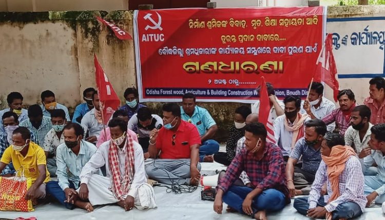 ବୌଦ୍ଧ,୨/୮- ବୌଦ୍ଧଜିଲ୍ଲାର ନିର୍ମାଣ ଶ୍ରମିକଙ୍କ ବହୁବିଧ ସମସ୍ୟା ଯଥା ଝିଅ ବିବାହ ସହାୟତା, ଶିକ୍ଷା ସହାୟତା, ମୃତ୍ୟୁକାଳୀନ ସହାୟତା ଆଦିି ପ୍ରଦାନ କ୍ଷେତ୍ରରେ ଜିଲ୍ଲାଶ୍ରମଧିକାରୀଙ୍କ ଟାଳଟୁଳ ନୀତି ପ୍ରତିବାଦରେ ଆଜି ଏଆଇଟିୟୁସି ସହବନ୍ଧିତ ଓଡିଶା ଫରେଷ୍ଟ ଉଡ ଏଗ୍ରିକଲଚର ଓ ବିଲଡିଂ କନଷ୍ଟ୍ରକ୍ସନ ୟୁନିଅନ ପକ୍ଷରୁ ଏଆଇଟିୟୁସି ଜିଲ୍ଲା ସଭାପତି ତଥା ୯ ନଂ ଜୋନ ଜିଲ୍ଲାପରିଷଦ ସଭ୍ୟ ଅବକାଶ ସାହୁଙ୍କ ସଭାପତିତ୍ୱରେ ଜିଲ୍ଲା ଶ୍ରମଧିକାରୀଙ୍କ କାର୍ଯ୍ୟାଳୟ ସମ୍ମୁଖରେ ଗଣଧାରଣା ଅନୁଷ୍ଠିତ ହୋଇଥିଲା । ଏହିଧାରଣାରେ ଏଆଇଟିୟୁସିର ରାଜ୍ୟ ଉପସାଧାରଣ ସମ୍ପାଦକ ତଥା ନିର୍ମାଣ ଶ୍ରମିକ ୟୁନିଅନ ସମନ୍ୱୟ ସମିତିର ରାଜ୍ୟ ଆବାହକ ସାଥି. ବିଜୟ ଜେନା, କନ୍ଧମାଳ ଜିଲ୍ଲା ନେତା ଶିଶିର ମଲ୍ଲିକ, ସିପିଆଇ ଜିଲ୍ଲା ସମ୍ପାଦକ ପ୍ରଦୀପ ମହାକୁଡ, ସହସମ୍ପାଦକ ଜୟନ୍ତ ଦେହୁରୀ, ନେତ୍ରାନନ୍ଦ କଁହର ଏଆଇୱାଇଏଫ ଜିଲ୍ଲାସଭାପତି ସୁଧାଂଶୁ ପ୍ରଧାନ ପ୍ରମୁଖ ଯୋଗଦେଇ ଡିଏଲଓ ଅଫିସ ସଂପ୍ରତିି ବିଜେଡି କାର୍ଯ୍ୟାଳୟରେ ପରିଣତ ହୋଇଥିବାରୁ ଶ୍ରମିକମାନେ ନ୍ୟାୟ ପାଇବାରୁ ବଞ୍ଚିତ ହେଉଛନ୍ତି । ଏଣୁ ତୁରନ୍ତ ଆଇନ ଅନୁଯାୟୀ ଜିଲ୍ଲାର ଶ୍ରମିକ ମାନଙ୍କୁ ନ୍ୟାୟ ପ୍ରଦାନ ନକଲେ ଜିଲ୍ଲାବ୍ୟାପି ଆନ୍ଦୋଳନକୁ ବ୍ୟାପକ କରିବାପାଇଁ ଚେତାବନୀ ଦେଇଥିଲେ । ପରିଶେଷରେ ଅଗଷ୍ଟ ମାସ ଶେଷ ସୁଦ୍ଧା ସମସ୍ତ ବକେୟା କାର୍ଯ୍ୟ ଶେଷ କରିବାର ପ୍ରତିଶ୍ରୁତି ଦେଲା ପରେ ଆନ୍ଦୋଳନରୁ ଓହରିଥିଲେ । ଏହି ଗଣଧାରଣାରେ ଅନ୍ୟମାନଙ୍କ ମଧ୍ୟରେ ଭୀମସେନ ଘିବେଲା, ପ୍ରଦୀପ କୁମାର ସାହୁ, ଭାଗିରଥି ଦାସ, ହାଡିବନ୍ଧୁ ବେହେରା, ଗୋପବନ୍ଧୁ ବେହେରା ପ୍ରମୁଖଙ୍କ ନେତୃତ୍ୱରେ ଶହେରୁ ଉଦ୍ଧ୍ୱର୍ ଆନ୍ଦୋଳନକାରୀ ଯୋଗ ଦେଇଥିଲେ ।