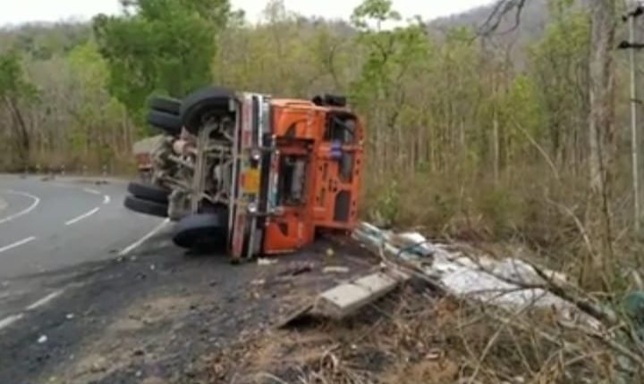 ଭାରସାମ୍ୟ ହରାଇ ଓଲଟିଲା ଟ୍ରକ୍‌, ଅଳ୍ପକେ ବର୍ତ୍ତିଲେ ଡ୍ରାଇଭର ଓ ଖଲାସୀ