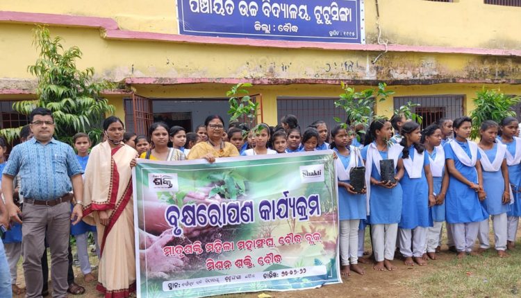 ବୌଦ୍ଧ,୨୦/୭- ବୌଦ୍ଧବ୍ଲକ ମୁର୍ଷୁଣ୍ଢି ଗ୍ରାମ ପଞ୍ଚାୟତର ଟୁଟୁସିଙ୍ଗା ପଞ୍ଚାୟତ ଉଚ୍ଚ ବିଦ୍ୟାଳୟ ପରିସରରେ ମାତୃଶକ୍ତି ମହିଳା ବ୍ଲକସ୍ତରୀୟ ମହାସଂଘ ଦ୍ୱାରା ବୃକ୍ଷରୋପଣ କାର୍ଯ୍ୟକ୍ରମ ଆୟୋଜନ ହୋଇଥିଲା । ଏହି କାର୍ଯ୍ୟକ୍ରମରେ ମହାସଂଘ ଓ ସ୍ୱୟଂ ସହାୟକ ଗୋଷ୍ଠୀର ମହିଳା ସଦସ୍ୟାଗଣ ଓ ସ୍କୁଲ ଛାତ୍ରୀମାନେ ବୃକ୍ଷରୋପଣ କରିଥିଲେ । ମିଶନ୍‌ ଶକ୍ତିର ଜିଲ୍ଲା ସଂଯୋଜକ ଦେବଦତ୍ତ ମିଶ୍ର, ଓଡ଼ିଶା ଆଜୀବିକା ମିଶନର ଜିଲ୍ଲା ସଂଯୋଜକ ଫ୍ରାନସିସ ବାର୍ଲା, ଶିଶୁ ବିକାଶ ପ୍ରକଳ୍ପ ଅଧିକାରିଣୀ ଶ୍ରୀମତୀ ମିନତୀ ଦେଓ, ପ୍ରଧାନ ଶିକ୍ଷକ ରାଧାମୋହନ ମହନା , ବ୍ଲକ୍‌ ସଂଯୋଜିକା ଶ୍ରୀମତି ସସ୍ମିତା ବାଦୀ ଏହି କାର୍ଯ୍ୟକ୍ରମରେ ଯୋଗଦେଇଥିଲେ ।