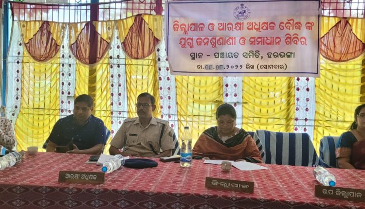 ବୌଦ୍ଧ,୮ା୮ : ବୌଦ୍ଧଜିଲ୍ଲା ହରଭଙ୍ଗା ପଂଚାୟତ ସମିତି ସଭାଗୃହ ଠାରେ ଜ଼ିଲ୍ଲାପାଳ ଓ ଆରକ୍ଷୀ ଅଧିକ୍ଷକ ବୌଦ୍ଧଙ୍କ ଯୁଗ୍ମ ଜନଶୁଣାଣୀ ଓ ସମାଧାନ ଶିବିର ଆଜି ଅନୁଷ୍ଠିତ ହୋଇଯାଇଛି । ଏହି ଶିବିରରେ ଭାରପ୍ରାପ୍ତ ଜ଼ିଲ୍ଲାପାଳ ବବିତାରାଣୀ ଦଳବେହେରା ଏବଂ ଅତିରିକ୍ତ ଆରକ୍ଷୀ ଅଧିକ୍ଷକ ରବୀନ୍ଦ୍ର କୁମାର ରାଉତ ଯୋଗଦେଇ ଲୋକଙ୍କ ଅଭିଯୋଗ ଶୁଣିଥିଲେ । ଅନ୍ୟମାନଙ୍କ ମଧ୍ୟରେ ଜିଲ୍ଲା ଗ୍ରାମ୍ୟ ଉନ୍ନୟନ ସଂସ୍ଥାର ପ୍ରକଳ୍ପ ନିର୍ଦ୍ଦେଶକ ଅଶ୍ୱିନୀ କୁମାର ମେହେର, ଉପ-ଜିଲ୍ଲାପାଳ ଅଭୟ କୁମାର ଦାସ, ହରଭଙ୍ଗା ବ୍ଲକ ବିଡିଓ ଶ୍ରୀମତୀ ସ୍ମିତା ରଥ, ହରଭଙ୍ଗା ତହସିଲଦାର ଶାନ୍ତିଭୂଷଣ ମିଶ୍ର ପ୍ରମୁଖ ଉପସ୍ଥିତ ଥିଲେ ।