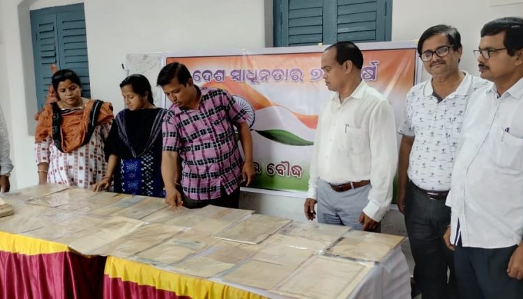 ବୌଦ୍ଧ,୧୪/୮- ଆଜାଦୀ କି ଅମୃତ ମହୋତ୍ସବ ଏବଂ ଦେଶ ସ୍ୱାଧୀନତାରେ ୭୫ ବର୍ଷ ପାଳନ ଅବସରରେ ଏକ ବିରଳ ଦସ୍ତାବିଜ ପ୍ରଦର୍ଶନୀର ଆୟୋଜନ ହୋଇଛି । ବୌଦ୍ଧ ଜିଲ୍ଲା ସଂଗ୍ରହାଳୟ ପରିସରରେ ଗବେଷକ ସତ୍ୟନାରାୟଣ ପାଣିଙ୍କ ଦ୍ୱାରା ସ୍ମୃତିରେ ବୌଦ୍ଧ ଗଡଜାତ ଶୀର୍ଷକ ଏକ ଡକ୍ୟୁମେଣ୍ଟ ପ୍ରଦର୍ଶନୀର ଆୟୋଜନ କରାଯାଇଥିଲା । ଏହି ପ୍ରଦର୍ଶନୀରେ ସ୍ୱାଧୀନତା ପୂର୍ବର ବହୁ ବିରଳ ମାନଚିତ୍ର, ଖବରକାଗଜ, ବୌଦ୍ଧ ଗଡଜାତ ଆନ୍ଦୋଳନ ସହ ଜଡିତ ଚିଠିପତ୍ର, ଦଲିଲ ଓ ବହୁ ରାଜ୍ୟ ତଥା ଜାତୀୟ ସ୍ତରୀୟ ନେତୃବୃନ୍ଦଙ୍କ ଚିଠି ସ୍ଥାନ ପାଇଥିଲା ।