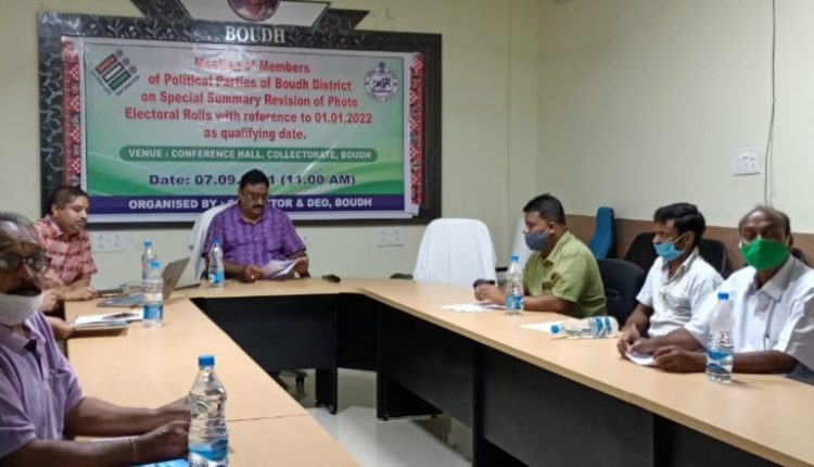 ବୌଦ୍ଧ,୭/୯- ଚଳିତ ଭୋଟର ତାଲିକାର ସ୍ୱତନ୍ତ୍ର ସଂକ୍ଷିପ୍ତ ସଂଶୋଧନ-୨୦୨୨ ନିମନ୍ତେ ଆଜି ଜିଲ୍ଲାପାଳଙ୍କ କା ର୍ଯ୍ୟାଳୟଠାରେ ଜିଲ୍ଲାର ସମସ୍ତ ରାଜନୈତିକ ଦଳମାନଙ୍କୁ ନେଇ ଜିଲ୍ଲାପାଳ ତଥା ଜିଲ୍ଲା ନିର୍ବାଚନ ଅଧିକାରୀ ଲଲାଟେନ୍ଦୁ ମିଶ୍ରଙ୍କ ଅଧ୍ୟକ୍ଷତାରେଏକ ସଭା ଅନୁଷ୍ଠିତ ହୋଇଯାଇଛି । ଏହି ସଭାରେ ଚଳିତ ସ୍ୱତନ୍ତ୍ର ସଂକ୍ଷିପ୍ତ ସଂଶୋଧନ-୨୦୨୨ କିଭଳି ଭାବେ ସଫଳତା ସହ ଅନୁଷ୍ଠିତ ହେବ ଏବଂ ବିଭିନ୍ନ ଜାତୀୟ ଏବଂ ରାଜ୍ୟସ୍ତରୀୟ ଦଳଦ୍ୱାରା ବୁଥସ୍ତରୀୟ ପ୍ରତିନିଧି ନିଯୁକ୍ତ କରିବା ନିମନ୍ତେ ଉପଜିଲ୍ଲାପାଳ ତଥା ଭୋଟର ପଞ୍ଜିକରଣ ଅଧିକାରୀ ଅଶ୍ୱିନୀ କୁମାର ମେହେର ବିସ୍ତୃତଭାବେ ବୁଝାଇଥିଲେ । ଭାରତୀୟ ଜନତା ପାର୍ଟି ତରଫରୁ ପ୍ରେମାନନ୍ଦ ମିଶ୍ର, ଭାରତୀୟ ଜାତୀୟ କଂଗ୍ରେସ ପାର୍ଟିରୁ ସମରେଶ ମିଶ୍ର, ବିଜୁଜନତା ଦଳରୁ ଶୀତାଂଶୁ ଶେଖର ମହାକୁଳ ଏବଂ କମ୍ୟୁନିଷ୍ଟ ପାର୍ଟିରୁ ଅବକାଶ ସାହୁ ଓ ବିଭୁତି ଭୂଷଣ ଦାସ ଉପସ୍ଥିତ ଥିଲେ । ଅନ୍ୟମାନଙ୍କ ମଧ୍ୟରେ ଡେପୁଟି କଲେକ୍ଟର (ନିର୍ବାଚନ) ସୁଶ୍ରୀ ସ୍ମିତ ରଥ, ଉପବିଭାଗ ଅଧିକାରୀ ରାଜଗୋପାଳ ମହାପାତ୍ର, ବରିଷ୍ଠ ରାଜସ୍ୱ ସହାୟକ ସରୋଜ କୁମାର ବେହେରା, କନିଷ୍ଠ ସହାୟକ ଦେବବ୍ରତ ପାଣିଗ୍ରାହୀ ଓ ଜିତେନ୍ଦ୍ର ମେହେର ପ୍ରମୁଖ ଉପସ୍ଥିତ ଥିଲେ ।