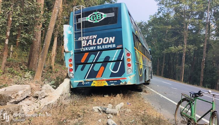 ହରଭଙ୍ଗା,୧୯/୧:- ବୌଦ୍ଧ ଜିଲ୍ଲା ହରଭଙ୍ଗା ବ୍ଲକ ଦେଇ ଯାଇଥିବା ୫୭ନଂ ଜାତୀୟ ରାଜପଥ କରଡ଼ାକୋଠା ନିକଟରେ ବେଲୁନ ନାମକ ଏକ ଘରୋଇ ବସ ଦୁର୍ଘଟଣା ଗ୍ରସ୍ତ ହୋଇଥିବା ଜଣାପଡିଛି । ସୂଚନାମତେ ଏହି ବସଟି ଭୁବନେଶ୍ୱରରୁ ୪୦ଜଣ ଯାତ୍ରୀ ନେଇ ସୋନପୁର ଜିଲ୍ଲା ଉଲୁଣ୍ଡା ଅଭିମୁଖେ ଯାଉଥିବା ସମୟରେ କରଡ଼ାକୋଠା ଠାରେ ଭାରସାମ୍ୟ ହରାଇ ସେପ୍ଟି ସାଇଟଗାର୍ଡରେ ଧକ୍କା ଦେଇ ଡ୍ରେନ ଭିତରକୁ ଖସି ପଡିଥିଲା । ଏହି ଦୁର୍ଘଟଣାରେ ୪ଜଣ ଯାତ୍ରୀ ଆହତ ଥିବାବେଳେ ଆହତଯାତ୍ରୀଙ୍କୁ ପୁରୁଣାକଟକ ଗୋଷ୍ଠୀ ସ୍ୱାସ୍ଥ୍ୟ କେନ୍ଦ୍ରରେ ଚିକିତ୍ସା କରାଇ ଛାଡ଼ିଦେବା ସହିତ ଅନ୍ୟ ଯାତ୍ରୀମାନଙ୍କୁ ଏକ ବସ ଯୋଗେ ପଠାଯାଇଥିଲା ।