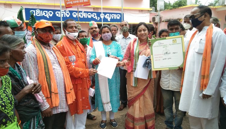 ପ୍ରଧାନମନ୍ତ୍ରୀ ଆବାସ ଯୋଜନାରେ ହଜାରେ କୋଟି ଟଙ୍କାର ଦୁର୍ନୀତିକୁ ବିରୋଧ କରି ଭାଜପାର କଣ୍ଟାମାଳ ବ୍ଲକ ଘେରାଉ: ଟଙ୍କା ଆମର ଯୋଜନା ଆମର ହେଲେ ବାହାବା ନେବା ସରକାରକୁ ପଡିବ ମହଙ୍ଗା-ଡଃ ଲେଖାଶ୍ରୀ
