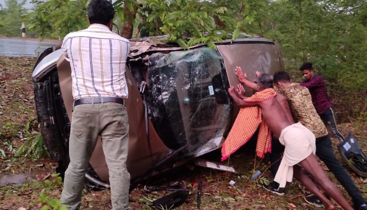 ଭାରସାମ୍ୟ ହରାଇ ଗଛରେ ପିଟିହେଲା କାର : ଜଣେ ମୃତ,ଜଣେ ଆହତ