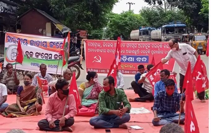 ଦଶପଲ୍ଲା,୧୫/୭ :- ସାରା ରାଜ୍ୟରେ ଏବେ କରୋନା ମହାମାରୀ ତାର କାୟାବିସ୍ତାର କରି ଚାଲିଥିବାବେଳେ ଓଡ଼ିଶାର ଅର୍ଥନୀତି ମେରୁଦଣ୍ଡକୁ ଦୋହଲାଇ ଦେଇଛି । ଖାଇବା ତେଲ ଠାରୁ ଆରମ୍ଭ କରି ପେଟ୍ରୋଲ ,ଡିଜେଲ ,ରନ୍ଧନ ଗ୍ୟାସ୍ର ଦରଦାମ ବୃଦ୍ଧିକୁ ନେଇ ଓଡ଼ିଶା ର ୪ ଟି ବାମଦଳ ପକ୍ଷରୁ ଆଜି ଦଶପଲ୍ଲା ବ୍ଲକ୍ ସାମ୍ନାରେ ,ସକାଳ ୬ ଘଣ୍ଟିକା ଠାରୁ ମଧ୍ୟାହ୍ନ ୧୨ ଘଣ୍ଟିକା ପର୍ଯ୍ୟନ୍ତ ୬ ଘଣ୍ଟିଆ ଓଡ଼ିଶା ବନ୍ଦ ଡାକରା ଦିଆଯାଇଛି । ବାମଦଳ ଗୁଡ଼ିକ ହେଲେ ସିପିଆଇ, ସିପିଆଇଏମ, ସିପିଆଇଏମଏଲ ଫରୱାର୍ଡ ବ୍ଲକ୍ ପକ୍ଷରୁ ବନ୍ଦ ଡାକରା ଦିଆଯାଇଥିବାବେଳେ ଏହି ବାମଦଳ ଗୁଡ଼ିକୁ କଂଗ୍ରେସ ଦୃଢ଼ ସମର୍ଥନ କରି ରାଜରାସ୍ତାକୁ ଓହ୍ଲାଇବା ସହ ଦୋକାନ ବଜାର ବନ୍ଦ କରି ବିଭିନ୍ନ ପେଟ୍ରୋଲ ପମ୍ପ ଓ ବଜାରର ମୁଖ୍ୟଛକ ଗୁଡିକରେ ବିକ୍ଷୋଭ ପ୍ରଦର୍ଶନ କରିଥିବାର ଦୃଶ୍ୟ ଦେଖିବାକୁ ମିଳିଥିଲା । ଦଳ ତରଫରୁ ସାଧାରଣ ଲୋକଙ୍କୁ ପେଟ୍ରୋଲ ପମ୍ପରେ ପେଟ୍ରୋଲ ଓ ଡିଜେଲ ନ କିଣିବା ପାଇଁ ପରାମର୍ଶ ଦିଆଯାଇଥିଲା । ଏହି ଗଣଧାରଣା ରେ ବାମଦଳ ନେତା କମ୍ରେଡ ଶରତଚନ୍ଦ୍ର ବେହେରା ,କଂଗ୍ରେସ ନେତା ନାରାୟଣ ସାହୁ, ସଚ୍ଚି଼ିଦାନନ୍ଦ ନାୟକ ,ଗଣେଶ ଭାଇଙ୍କ ସମେତ ବହୁ କଂଗ୍ରେସ କର୍ମୀ ଓ ବାମଦଳ କର୍ମୀ ଯୋଗ ଦେଇଥିଲେ ।