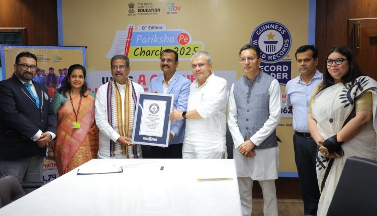 ନୂଆଦିଲ୍ଲୀ/ଭୁବନେଶ୍ୱର: ପ୍ରଧାନମନ୍ତ୍ରୀ ଶ୍ରୀ ନରେନ୍ଦ୍ର ମୋଦୀଙ୍କ ‘ପରୀକ୍ଷା ପେ ଚର୍ଚ୍ଚା(ପିପିସି) -୨୦୨୫ ଗୋଟିଏ ମାସରେ ସର୍ବାଧିକ ପଞ୍ଜୀକରଣ ପାଇଁ ଗିନିଜ୍ ଓ୍ୱାର୍ଲଡ୍ ରେକର୍ଡରେ ସ୍ଥାନ ପାଇଛି । କେନ୍ଦ୍ର ଶିକ୍ଷା ମନ୍ତ୍ରୀ ଧର୍ମେନ୍ଦ୍ର ପ୍ରଧାନ ଆଜି ଆୟୋଜିତ ସ୍ୱତନ୍ତ୍ର କାର୍ଯ୍ୟକ୍ରମରେ କେନ୍ଦ୍ର ରେଳ ଏବଂ ସୂଚନା ଓ ପ୍ରସାରଣ ମନ୍ତ୍ରୀ ଅଶ୍ୱିନୀ ବୈଷ୍ଣବ ଏବଂ ରାଷ୍ଟ୍ରମନ୍ତ୍ରୀ ଜିତିନ ପ୍ରସାଦଙ୍କ ସହିତ ଆନୁଷ୍ଠାନିକ ଭାବରେ ‘ପରୀକ୍ଷା ପେ ଆଲୋଚନା’ ପାଇଁ ଗିନିଜ୍ ଓ୍ୱାର୍ଲଡ୍ ରେକର୍ଡର ଏକ ପ୍ରମାଣପତ୍ର ଗ୍ରହଣ କରିଛନ୍ତି ।
