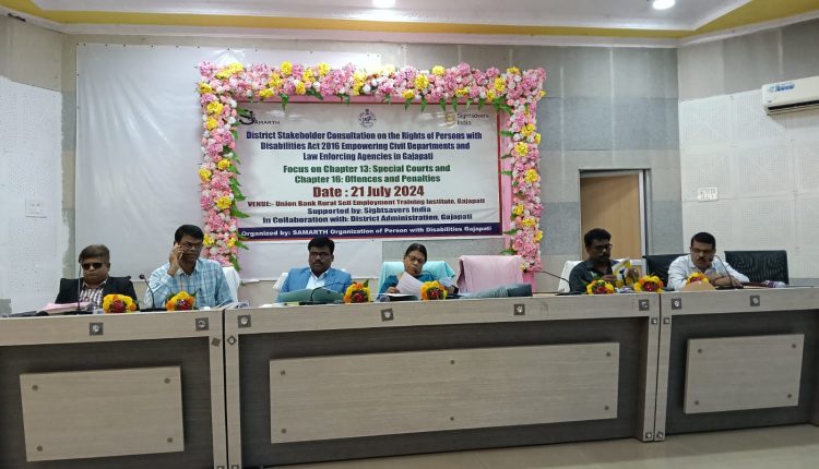 ଗଜପତି : ଗଜପତି ଜିଲ୍ଲା ସଦର ମହକୁମା ପାରଳାଖେମୁଣ୍ଡି ସ୍ଥିତ ଗ୍ରାମୀଣ ଆତ୍ମ ନିଯୁକ୍ତି ପ୍ରଶିକ୍ଷଣ କେନ୍ଦ୍ର ଠାରେ ଜିଲ୍ଲା ସ୍ତରୀୟ ଭିନ୍ନକ୍ଷମ ଅଧିକାର ଅଧିନିୟମ ଧାରା ୨୦୧୬ ଅନ୍ତର୍ଗତ ଅଧ୍ୟାୟ ୧୩ ସ୍ୱତନ୍ତ୍ର ଅଦାଲତ ଓ ଅଧ୍ୟାୟ 16 ଅପରାଧ ଜୋରିମାନା ସମ୍ପର୍କିତ ଏକ ସ୍ୱତନ୍ତ୍ର ସଚେତନତା କର୍ମଶାଳା କାର୍ଯ୍ୟରତ ଆଇନ ରକ୍ଷକ ପୋଲିସ ଅଧିକାରୀ, ଜିଲ୍ଲାର ବିଭିନ୍ନ ବିଭାଗୀୟ ଅଧିକାରୀ ମାନଙ୍କୁ ନେଇ ଜିଲ୍ଲାର ଭିନ୍ନକ୍ଷମ ଅନୁଷ୍ଠାନ ସମର୍ଥ ପକ୍ଷରୁ ସି ସି ଡି ଓ ସାଇଡ ସେର୍ଭର ସହାୟତାରେ ଅନୁଷ୍ଠିତ ହୋଇଯାଇଛି। ମୁଖ୍ୟତଃ ଥାନା FIR ରେ ୨୦୧୬ ମସିହାରେ ଭିନ୍ନକ୍ଷମ ଅଧିକାର ଆଇନ ଅଧ୍ୟାୟ ୧୬ ରେ ଥିବା ଧାରା FIR ରେ ଯେତେବେଳେ ପର୍ଯ୍ୟନ୍ତ ନଆସିବ ସେତେବେଳେ ପର୍ଯ୍ୟନ୍ତ ସ୍ୱତନ୍ତ୍ର ଅଦାଲତର କୌଣସି କାର୍ଯ୍ୟକାରିତା ହୋଇ ପାରିବ ନାହିଁ। ତେଣୁ ଏହି ଅଧିନିୟମ କାର୍ଯ୍ୟକାରି କରିବା ଏହି କାର୍ଯ୍ୟକ୍ରମର ମୁଖ୍ୟ ଉଦ୍ଦେଶ୍ୟ ବୋଲି କୁହାଯାଇଛି। ଭିନ୍ନକ୍ଷମ ଅନୁଷ୍ଠାନର ଜିଲ୍ଲା ସଭାପତି ଶ୍ରୀ ନିରଞ୍ଜନ ବେହେରାଙ୍କ ସଭାପତିତ୍ୱରେ ଅନୁଷ୍ଠିତ କର୍ମଶାଳା କାର୍ଯ୍ୟକ୍ରମରେ ରାଜ୍ୟ ଭିନ୍ନକ୍ଷମ ଆୟୋଗ ଅଧ୍ୟକ୍ଷା ବ୍ରତତି ହରି ଚନ୍ଦନ ଏବଂ ଜିଲ୍ଲା ଦୌରା ଜଜ୍ ଶ୍ରୀ ପ୍ରଣବ କୁମାର ରାଉତରାୟ ଅତିଥି ଭାବେ ଯୋଗ ଦେଇ ଭିନ୍ନକ୍ଷମମାନଙ୍କ କ୍ଷେତ୍ରରେ ଅନ୍ୟ ମାନଙ୍କୁ ସୁସ୍ଥ ମାନସିକତାର ପରିବର୍ତ୍ତନ ଦରକାର କୋର୍ଟ ଅଛି ଏବଂ ଆମେ ମଧ୍ୟ ଆପଣ ମାନଙ୍କ ପାଇଁ ଅଛୁ ଏ ଦିଗରେ ସ୍ୱତନ୍ତ୍ର କୋର୍ଟ ମଧ୍ୟ ଗଠନ ହୋଇଛି ଏବଂ ତାର ଉପଯୁକ୍ତ କାର୍ଯ୍ୟକାରୀ ହେବା ପାଇଁ ପ୍ରତିଶ୍ରୁତି ଦେବା ସହ ପୋଲିସ ପ୍ରଶାସନକୁ FIR ରେ ଭାରତୀୟ ଆଇନ ସହ ଏହି ଧାରା ସଂଯୋଗ କରିବା ପାଇଁ ପଦକ୍ଷେପ ନେବାକୁ ପରାମର୍ଶ ଦେଇଥିଲେ। ଅନ୍ୟ ମାନଙ୍କ ମଧ୍ୟରେ ଗଜପତି ଜିଲ୍ଲା ଆରକ୍ଷୀ ଅଧିକ୍ଷକ ସ୍ୱାତି ଏସ କୁମାର, ଅତିରିକ୍ତ ଜିଲ୍ଲାପାଳ ରାଜେନ୍ଦ୍ର ମିଞ୍ଜ, ଜିଲ୍ଲା ପରିଷଦ ମୁଖ୍ୟ ଉନ୍ନୟନ ଅଧିକାରୀ ଡକ୍ଟର ଗୁଣନିଧି ନାୟକ, ସିଡିଏମ ଓ ଡକ୍ଟର ମୁବାରକ ଅଲ୍ଲି ପ୍ରମୁଖ ଯୋଗ ଦେଇ ଭିନ୍ନକ୍ଷମ ଭାଇ ଭଉଣୀମାନଙ୍କୁ ଯଦି ସମାନ ସୁବିଧା ସୁଯୋଗ ଦିଆଯିବ ତେବେ ସେମାନେ ମଧ୍ୟ ଏହି ସମାନ ସୁବିଧା ପାଇ ସମାଜର ମୁଖ୍ୟ ସ୍ରୋତରେ ସାମିଲ ହୋଇ ଏକ ସୁସ୍ଥ ଜୀବନ ଯାପନ କରିବାରେ ସହାୟକ ହୋଇ ପାରିବେ ବୋଲି କହିଥିଲେ। ଏହି କାର୍ଯ୍ୟକ୍ରମରେ ସି ସି ଡି ମୁଖ୍ୟ ଏ. ଜଗନ୍ନାଥ ରାଜୁ ଓ ସମର୍ଥ ଅନୁଷ୍ଠାନର ଜିଲ୍ଲା ସମ୍ପାଦକ ସନ୍ତୋଷ ମହାରଣା ଯୋଗ ଦେଇ ଭିନ୍ନକ୍ଷମ ଅଧିକାର ନିୟମ ୨୦୧୬ ଧାରାର ଅଧ୍ୟାୟ ୧୩ ଓ ଅଧ୍ୟାୟ ୧୬ କାର୍ଯ୍ୟକାରୀତା ଓ ତାର ଉପକାରୀତା ବିଭିନ୍ନ ଦିଗରେ ଉପରେ ବିସ୍ତୃତ ଭାବେ ଆଲୋଚନା କରିଥିଲେ। ସି ସି ଡି ଅନୁଷ୍ଠାନ ମୁଖ୍ୟ ଏ. ଜଗନ୍ନାଥ ରାଜୁ କାର୍ଯ୍ୟକ୍ରମର ଆଭିମୁଖ୍ୟ ସମ୍ପର୍କରେ ପାରମ୍ଭିକ ସୂଚନା ଦେଇଥିବା ବେଳେ ଭିନ୍ନକ୍ଷମ ଅନୁଷ୍ଠାନର ସମ୍ପାଦକ ସମସ୍ତଙ୍କୁ ଧନ୍ୟବାଦ ଅର୍ପଣ କରିଥିଲେ। ଗଜପତିରୁ ବିବେକାନନ୍ଦ ବେହେରାଙ୍କର ରିପୋର୍ଟ ହିରାଞ୍ଚଳ live