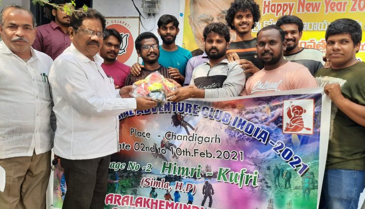 ପାରଳାଖେମୁଣ୍ଡି,୩୦/୧- ଜାତୀୟ ଦୁଃସାହସିକ କ୍ରୀଡା ପ୍ରତିଯୋଗିତା ପାଇଁ ଗଜପତି ଜିଲ୍ଲା ପାରଳାଖେମୁଣ୍ଡିରୁ ଏକ ଦଶ ଜଣିଆ ଦଳ ଆଜି ଚଣ୍ଡିଗଡ ଅଭିମୁଖେ ବାହାରିଛନ୍ତି । କେନ୍ଦ୍ର ସରକାରଙ୍କ କ୍ରୀଡା ଓ ଯୁବବ୍ୟାପାର ବିଭାଗ ପକ୍ଷରୁ ଆସନ୍ତା ଫେବୃଆରୀ ମାସ ଦ୍ୱିତୀୟ ସପ୍ତାହ ଚଣ୍ଡିଗଡ ଠାରେ ୨୭ ତମ ଜାତୀୟ ଦୁଃସାହସିକ କ୍ରୀଡା ଶିବିର ଆୟୋଜନ ହେବ । ଏଥିରେ ଗଜପତି ଜିଲ୍ଲାର ୧୦ ଜଣ ଯୁବକ ଯୋଗ ଦେଇ ବିଭିନ୍ନ ବିଭାଗରେ ନିଜର କ୍ରୀଡା କୌଶଳ ପ୍ରଦର୍ଶନ କରିବେ ସେଥିପାଇଁ ପାରଳାଖେମୁଣ୍ଡି ବିଧାୟକ ଆଜି ସେମାନଙ୍କୁ ପୁଷ୍ପଗୁଚ୍ଛ ଦେଇ ଶୁଭେଛା ବାର୍ତ୍ତା ଦେବା ସହ ଜିଲ୍ଲା ତଥା ରାଜ୍ୟ ପାଇଁ ଗୌରବ ଆଣି ଫେରିବାକୁ କହିଥିଲେ ।