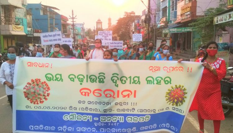 ପାରଳାଖେମୁଣ୍ଡି, ୫/୪- ଗଜପତି ଜିଲ୍ଲା ସଦର ମହକୁମା ପାରଳାଖେମୁଣ୍ଡି ସ୍ଥିତ ପ୍ରଗତିଶୀଳ ମହିଳା ସଙ୍ଗଠନ ଅନନ୍ୟା ଆନୁକୂଲ୍ୟରେ କୋଭିଡ୍ ସଚେତନତା କାର୍ଯ୍ୟକ୍ରମ ଅନୁଷ୍ଠିତ ହୋଇଯାଇଛି । କରୋନା ସଂକ୍ରମଣରୁ ନିଜକୁ କିଭଳି ସତର୍କ ରହି ସରକାରଙ୍କ କରୋନା ନିୟମାବଳୀ ତଥା ମାର୍ଗଦର୍ଶିକାକୁ ମାନିବେ ସେ ଉଦ୍ଦେଶ୍ୟ ନେଇ ଏକ ବିରାଟ ଜନସଚେତନତା ଶୋଭାଯାତ୍ରା ବାହାରି ନଗର ପରିକ୍ରମା କରିଥିଲେ । ଗତକାଲି ସନ୍ଧ୍ୟା ୫ ଘଣ୍ଟା ସମୟରେ ସ୍ଥାନୀୟ ମହାରାଜାଙ୍କ ରାଜନହର ଠାରୁ ବାହାରିଥିବା ସଚେତନତା ଶୋଭାଯାତ୍ରାକୁ ପୌରପରିଷଦର ଯନ୍ତ୍ରୀ ସଞ୍ଜୀବ କୁମାର ଚଂପତ୍ତି ଓ “ଅନନ୍ୟା”ର ଉପଦେଷ୍ଟା ଶିକ୍ଷାବିତ ବିଚିତ୍ରାନନ୍ଦ ବେବର୍ତ୍ତା ମିଳିତଭାବେ ସବୁଜ ପତାକା ଦେଖାଇ ଶୁଭାରମ୍ଭ କରିଥିଲେ ।