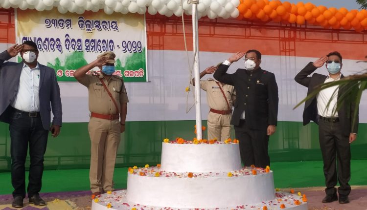 ପାରଳାଖେମୁଣ୍ଡି, : ଗଜପତି ଜିଲ୍ଲା ସଦର ମହକୁମା ପାରଳାଖେମୁଣ୍ଡି ଠାରେ ଥିବା ଗଜପତି ଷ୍ଟାଡିୟମ ଠାରେ ଜିଲ୍ଲା ପ୍ରଶାସନ ଆନୁକୁଲ୍ୟରେ ୭୩ତମ ଜିଲ୍ଲାସ୍ତରୀୟ ସାଧାରଣତନ୍ତ୍ର ଦିବସ କୋଭିଡ କଟକଣା ଯୋଗୁଁ ନିରାଡମ୍ବର ଭାବେ ପାଳିତ ହୋଇଯାଇଛି । ଏହି କାର୍ଯ୍ୟକ୍ରମରେ ମୁଖ୍ୟଅତିଥି ଭାବେ ଗଜପତି ଜିଲ୍ଲାପାଳ ଲିଙ୍ଗରାଜ ପଣ୍ଡା ଯୋଗଦେଇ ଆନୁଷ୍ଠାନିକ ଭାବେ ଜାତୀୟ ପତାକା ଉତ୍ତୋଳନ କରିଥିଲେ । ସମ୍ମିଳିତ ପରେଡ ଦଳର ପରିଦର୍ଶନ ଓ ଅଭିବାଦନ ଗ୍ରହଣ କରି ଜିଲ୍ଲାବାସୀଙ୍କୁ ଜାତି ଓ ଦେଶ ଉଦ୍ଦେଶ୍ୟରେ ଉଦ୍ବୋଧନ ଦେଇ ଜିଲ୍ଲାପାଳ ଶ୍ରୀ ପଣ୍ଡା କହିଥିଲେ ଯେ, ଜାନୁଆରୀ ୨୬ ତାରିଖ ପବିତ୍ର ସାଧାରଣତନ୍ତ୍ର ଦିବସ ଭାରତର ପ୍ରତ୍ୟେକ ନାଗରିକଙ୍କ ପାଇଁ ଏକ ସ୍ମରଣୀୟ ଦିବସ ଏବଂ ଆମ ଜାତି ଓ ଦେଶ ପାଇଁ ଏକ ଗୌରବମୟ ଦିବସ । ବିବିଧତା ମଧ୍ୟରେ ଏକତା ହେଉଛି ଜାତୀୟତା । ତେଣୁ ଏହି ପବିତ୍ର ଦିବସରେ ଜାତିର ପିତା ମାହତ୍ମାଗାନ୍ଧୀଙ୍କ ସମେତ ପ୍ରାଣବଳୀ ଦେଇଥିବା ସ୍ୱାଧୀନତା ସଂଗ୍ରାମୀ ଓ ଭାରତ ସମ୍ବିଧାନର ସଦସ୍ୟ ମହାପୁରୁଷମାନଙ୍କ ପ୍ରତି ଭକ୍ତିପୂତ ଗଭୀର ଶ୍ରଦ୍ଧାଞ୍ଜଳି ଜ୍ଞାପନ କରିଥିଲେ । ଭାରତର ସ୍ୱାଧୀନତା ଆନ୍ଦୋଳରେ ଓଡିଶାର ଗଜପତି ଜିଲ୍ଲାର ଭୂମିକା ଅତ୍ୟନ୍ତ ଗୁରୁତ୍ୱପୂର୍ଣ୍ଣ । ବଣପାହାଡ ଘେରା ପ୍ରାକୃତିକ ସୌନ୍ଦର୍ଯ୍ୟମୟ ଏହି ଗଜପତି ଜିଲ୍ଲା ରାଜନୀତିଠାରୁ ଆରମ୍ଭ କରି କଳା, ସଂସ୍କୃତି, ସଙ୍ଗୀତ, ସାହିତ୍ୟ ଓ ନାଟ୍ୟ ଜଗତରେ ବହୁ ପ୍ରତିଷ୍ଠା ଲାଭ କରିଥିବା ଏହି ମାଟିରେ ଜନ୍ମ ନେଇଛନ୍ତି ବହୁ ଯୁଗଜନ୍ମା । ସ୍ୱତନ୍ତ୍ର ଉତ୍କଳ ପ୍ରଦେଶ ଗଠନରେ ପାରଳା ମହାରାଜା ଶ୍ରୀଶ୍ରୀଶ୍ରୀ କୃଷ୍ଣଚନ୍ଦ୍ର ଗଜପତି ନାରାୟଣ ଦେବଙ୍କ ଅବଦାନ ଅତୁଳନୀୟ ବୋଲି କହିବା ସହ ସମ୍ବିଧାନ ମହାସଭାର ସଦସ୍ୟ ଭାବେ ବହୁମୂଲ୍ୟ ଯୋଗଦାନ ଦେଇ ବିଶ୍ୱର ସବୁଠାରୁ ବଡ ଗଣତାନ୍ତ୍ରିକା ରାଷ୍ଟ୍ରର ସମ୍ବିଧାନକୁ ଆହୁରି ସଶକ୍ତି କରିଥିଲେ । କେବଳ ସେତିକି ନୁହଁ ଆମ ଭୂମିର ମହାନ ସ୍ୱାଧୀନତା ସଂଗ୍ରାମୀ ଗୁରାଣ୍ଡିର ନାରାୟଣ ପାତ୍ର, ପାରଳାଖେମୁଣ୍ଡିର ମକରା ଲିମା, ବଳରାମ ପଣ୍ଡା, କାଶୀନଗରର କାନ୍ତା ରାଓ ପ୍ରମୁଖଙ୍କ ତ୍ୟାଗ ଫଳରେ ଆମେ ଆଜି ଗର୍ବିତ । ସେହି ସମସ୍ତ ମହାପୁରୁଷଙ୍କୁ ଆମର ପ୍ରଣାମ ବୋଲି କହିଥିଲେ । ତାହାଛଡା କରୋନାର ତୃତୀୟ ଲହରୀ ସମଗ୍ର ଦେଶରେ କାୟା ବିସ୍ତାର କରିଛି । ତେଣୁ ଆଜିର ଏହି ଶୁଭ ଅବସରରେ ଆମେ ସମସ୍ତେ ଶପଥ ନେବା ଯେ, ସମସ୍ତେ ମାସ୍କ ପରିଧାନ କରି ସାମାଜିକ ଦୂରତା ରକ୍ଷା କରିବା ସହ କୋଭିଡ ଟିକା ନେବା ପାଇଁ ପରାମର୍ଶ ଦେଇଥିବା ସହ ଆମେ ସମସ୍ତ ଗଜପତିବାସୀ ଆମ ଜିଲ୍ଲା, ରାଜ୍ୟ ତଥା ଦେଶର ଉନ୍ନତି ପାଇଁ ମିଳିମିଶି କାର୍ଯ୍ୟ କରିବା ପାଇଁ ଆହ୍ୱାନ ଦେଇଥିଲେ ।