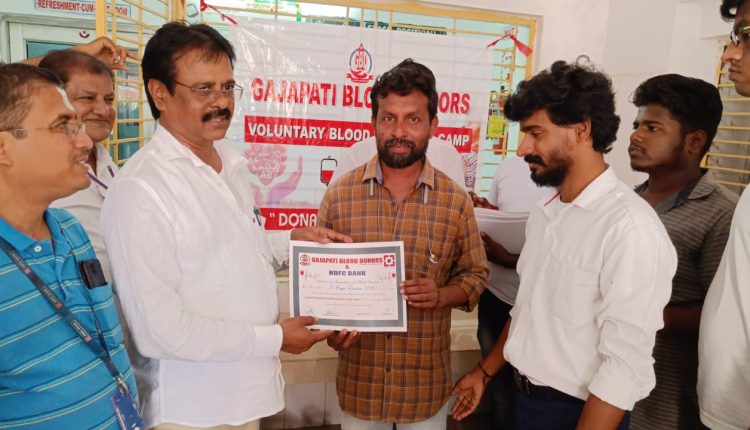 ପାରଳାଖେମୁଣ୍ଡି : ଗଜପତି ଜିଲ୍ଲା ସଦର ମହକୁମା ପାରଳାଖେମୁଣ୍ଡି ସ୍ଥିତ ଜିଲ୍ଲା ମୁଖ୍ୟ ଚିକିତ୍ସାଳୟ ପରିସରରେ ଥିବା ରକ୍ତ ଭଣ୍ଡାର କେନ୍ଦ୍ର ଠାରେ ଗଜପତି ବ୍ଳଡ଼ ଡୋନର ପକ୍ଷରୁ ରକ୍ତଦାନ ଶିବିର ଅନୁଷ୍ଠିତ ହୋଇଯାଇଛି । ଏହି କାର୍ଯ୍ୟକ୍ରମରେ ମୁଖ୍ୟ ଅତିଥି ଭାବେ ଜିଲ୍ଲା ପରିଷଦ ଅଧ୍ୟକ୍ଷ ଜୀ. ତିରୁପତି ରାଓ ରିବନ କାଟି ଶୁଭ ଉଦଘାଟନ କରିଥିଲେ । ଗଜପତି ବ୍ଲଡ଼ ଡୋନର ଓ ଏଚ୍ଏଡ୍ଏଫ୍ସିଙ୍କ ମିଳିତ ସହଯୋଗରେ ଏହି କାର୍ଯ୍ୟକ୍ରମ ଅନୁଷ୍ଠିତ ହୋଇଥିଲା । ଏହି କାର୍ଯ୍ୟକ୍ରମରେ ୨୫ ୟୁନିଟ ରକ୍ତ ସଂଗୃହୀତ ହୋଇଥିଲା । ଏଥିରେ ଗଜପତି ବ୍ଲଡ଼ ଡୋନରର ସଭାପତି ଜୀ. ନବୀନ କୁମାର, ଉପ ସଭାପତି ଏସ. ଋଷି, ସମ୍ପାଦକ ୱାଇ. ଚନ୍ଦ୍ର ଶେଖରଙ୍କ ସମେତ କେ. ଶରତ କୁମାର, ଅମ୍ବିକା ମହାପାତ୍ର, ମୋହିନୀ ପ୍ରଧାନ ପ୍ରମୁଖ ଉପସ୍ଥିତ ରହି ସୁଚାରୁ ରୂପେ ପରିଚାଳନା କରିଥିଲେ । ବ୍ଲଡ଼ ବ୍ୟାଙ୍କର ଲ୍ୟାବ ଟେକ୍ନିସିଆନ ଖଗେଶ୍ୱର ବେହେରା ଓ ମେନେଜମେଣ୍ଟ ଆସିଷ୍ଟାଣ୍ଡ ପିଙ୍କି ପାଢ଼ୀଙ୍କୁ ଗଜପତି ବ୍ଲଡ଼ ଡୋନର ପକ୍ଷରୁ ସମ୍ବର୍ଦ୍ଧନା କରାଯାଇଛି । ମୁଖ୍ୟ ଅତିଥି ଜୀ. ତିରୁପତି ରାଓଙ୍କ ଦ୍ୱାରା ରକ୍ତ ପ୍ରଦାନ କାରୀଙ୍କୁ ସାର୍ଟିଫିକେଟ ପ୍ରଦାନ କରାଯାଇଛି ।