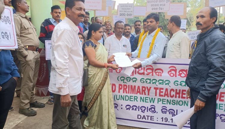 ନନ୍ଦାହାଣ୍ଡି,୧୯/୧୧- ନବରଙ୍ଗପୁର ଜିଲ୍ଳା ନନ୍ଦାହାଣ୍ଡି ବ୍ଳକର ମିଳିତ ପ୍ରାଥମିକ ଶିକ୍ଷକ ମହାସଂଘ ତରଫରୁ ମୁଖ୍ୟ ମନ୍ତ୍ରୀଙ୍କ ଉଦ୍ଦେଶ୍ୟରେ ଗୋଷ୍ଠୀ ଶିକ୍ଷା ଅଧିକାରୀଙ୍କୁ ତିନି ଦଫା ଦାବୀପତ୍ର ପ୍ରଦାନ କରାଯାଇଛି । ସଂଘର କାର୍ଯ୍ୟକାରୀ ସଭାପତି ଭୁବନେଶ ନାୟକଙ୍କ ନେତୃତ୍ୱରେ ଡଙ୍ଗରଭେଜା ଚନ୍ଦ୍ରଶେଖର ଶିବ ମନ୍ଦିର ଠାରୁ ଏକ ଶୋଭାଯାତ୍ରା ବାହାରି ବିଭିନ୍ନ ନାରାଦେଇ ବ୍ଲକ ଅଫିସରେ ପହଞ୍ଚିଥିଲେ ଏବଂ ଦାବିପତ୍ର ଗୋଷ୍ଠୀ ଶିକ୍ଷା ଅଧିକାରୀଙ୍କ ଦାୟିତ୍ୱରେ ଥିବା ଅତିରିକ୍ତ ଗୋଷ୍ଠୀ ଶିକ୍ଷା ଅଧିକାରୀ ହରିହର ବେହେରାଙ୍କୁ ପ୍ରଦାନ କରିଥିଲେ । ନୂତନ ପେନସନ ଯୋଜନା ଉଚ୍ଛେଦ, ପୂର୍ବର ଛଅ ବର୍ଷ ଦରମା ଏହି ଦରମା ସହିତ ମିଶାଯାଉ ଓ କେନ୍ଦ୍ର ଦରମା ଲାଗୁ କରାଯାଉ ପ୍ରମୁଖ ତିନୋଟି ଦାବି ରଖିଥିଲେ । ବ୍ଲକ ଚେୟାରମ୍ୟାନ ଶ୍ରୀମତୀ ରଶ୍ମିତା ମାଝୀ ଓ ଜିଲ୍ଳା ପରିଷଦ ସଭ୍ୟ ଦିବ୍ୟଦାନ ସୁନାଙ୍କୁ ମଧ୍ୟ ଏହି ଦାବୀପତ୍ର ପ୍ରଦାନ କରିଛନ୍ତି । ସରକାରଙ୍କ ଯାହା ନିର୍ଦ୍ଦେଶ ଦିଆଯାଉଛି ସମସ୍ତ ଜିନିଷ ପାଳନ କରୁଛୁ ପ୍ରଥମରୁ କମ ଦରମା କାର୍ଯ୍ୟ କରି ଆସୁଛୁ ଆମକୁ ସରକାର ଅନେକ ଅବହେଳା କରୁଛନ୍ତି । ଯଦି କୌଣସିି ପଦକ୍ଷେପ ନ ନିଆଯାଏ ଆଗାମୀ ଦିନରେ ଆନ୍ଦୋଳନ ଜୋରଦାର କରାଯିବ ବୋଲି ଚେତାବନୀ ଦେଇଛନ୍ତି । ଏଥିରେ ସଂଘର କାର୍ଯ୍ୟକାରୀ ସଂପାଦକ ମଧୁସୂଦନ ହରିଜନଙ୍କ ସହ ୧୨୦ ଜଣ ଶିକ୍ଷକ ଯୋଗ ଦେଇଥିଲେ ।