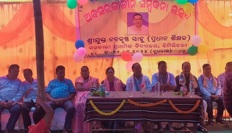 ନୟାଗଡ଼ : ନୟାଗଡ଼ ଜିଲ୍ଲା ନୂଆଗାଁ ବ୍ଲକ ଡ଼ିମିରିଝରୀ ସରକାରୀ ପ୍ରାଥମିକ ବିଦ୍ୟାଳୟ ମଧ୍ୟରେ ବିଦ୍ୟାଳୟର ପ୍ରଧାନ ଶିକ୍ଷକ ନବକୃଷ୍ଣ ସାହୁଙ୍କ ଅବସର କାଳୀନ ସମ୍ବର୍ଦ୍ଧନା ଉତ୍ସଵ ପାଳନ ହୋଇଯାଇଛି I ଡ଼ିମିରିଝରି ଗ୍ରାମର ଗ୍ରାମବାସୀ ଓ ବିଦ୍ୟାଳୟ କମିଟିର ମିଳିତ ଆନୁକୂଲ୍ୟରେ ଆଜିର ଏହି ଉତ୍ସଵ ପାଳନ ହୋଇଯାଇଛି I ବିଦ୍ୟାଳୟର ପରିସରରେ ସଭାର ଆୟୋଜନ କରାଯାଇଥିଲା I ଏହି କାର୍ଯ୍ୟକ୍ରମ ବିଶେଷତ୍ୱ ଅତିନିଆରା, କାରଣ ଉକ୍ତ ଉତ୍ସବରେ ବିଦ୍ୟାଳୟର ସମସ୍ତ କମିଟି, ଗ୍ରାମର ସମତେ ମାନ୍ୟଗଣ୍ୟ ବ୍ୟକ୍ତି ଉପସ୍ଥିତ ରହିଥିଲେ I ଏହି କାର୍ଯ୍ୟକ୍ରମର ବିଶେଷତଃ ସମସ୍ତ ଅବସର ପ୍ରାପ୍ତ ଶିକ୍ଷକ ମାନଙ୍କୁ ଏହି ସଭାବକୁ ନିମନ୍ତ୍ରଣ କରାଯାଇଥିଲା I ବହୁସଂଖ୍ୟାରେ ଅବସର ପ୍ରାପ୍ତ ଶିକ୍ଷକ ଶିକ୍ଷୟତ୍ରୀ ଏହି କାର୍ଯ୍ୟକ୍ରମ ଯୋଗଦେଇଥିଲେ I ଯାହାକି ଅତି ନୀଆରା ଥିଲା I ଏକାକାଳୀନ ଅବସର ପ୍ରାପ୍ତ ଶିକ୍ଷକଙ୍କୁ ଏକତ୍ରିତ କରିଥିବାରୁ ଅଞ୍ଚଳରେ ଆନନ୍ଦର ପରିବେଶ ସୃଷ୍ଟି ହୋଇଥିଲା I ଉପସ୍ଥିତ ଥିବା ଅତିଥିମାନେ ନବସାରଙ୍କର ଗୁଣଗାଣ ଗାନ କରିଥିଲେ I ଚାକିରୀ ଜୀବନରେ କିପରି ଜଣେ ଆଦର୍ଶ ଶିକ୍ଷକ ଭାବରେ ବିଭିନ୍ନ ବିଦ୍ୟାଳରେ କାର୍ଯ୍ୟ କରି ସଫଳ ଭାବରେ ଜଣେ ଆଦର୍ଶ ଶିକ୍ଷକ ଭବରେ ସୁପରିଚିତ ଆର୍ଯ୍ୟନ କରିଛନ୍ତି ଯାହାକି ଆଜି ସଭିଙ୍କୁ ଟାଣି ଆଣିଥିଲା ଆଜିର ଏହି କାର୍ଯ୍ୟକ୍ରମ I ମଞ୍ଚକୁ ଶିକ୍ଷକ କବିରାଜ ବିସେଲ ପରିଚାଳନା କରାଯିଥିଲେ I ନୂଆଗାଁ ବ୍ଲକ ଶିକ୍ଷକ ଅଧିକାରୀ ପ୍ରଶନ କୁମାର ସାହୁ, ଏବିଓ ଜ୍ୟୋଡ଼ଚଣା ରାଣୀ ସେଠୀ, କବିତା ଦାସ, ଶିକ୍ଷକ ମଦନ ମୋହନ ପ୍ରଧାନ, ସୁରେଶ ମହାପାତ୍ର,ରବୀନ୍ଦ୍ର ଖଣ୍ଡୁଆଳ, ଧୀରେନ୍ଦ୍ର କୁମାର ସାହୁ, ବିଦ୍ୟାଳୟକମିଟି ସଭାପତି ପ୍ରମୋଦ କୁମାର ପ୍ରଧାନ, ସୁଭଦ୍ରା ସାହୁ ପ୍ରମୁଖ ଅତିଥିମାନେ ମଞ୍ଚସିନ ହୋଇଥିଲେ I ବିଦ୍ୟାଳୟ ଓ ଗ୍ରାମ ପରିଚାଳନା କମିଟି ଦ୍ୱାରା ଗ୍ରାମର ଜଣେ ବୟଜେଷ୍ଟ ବ୍ୟକ୍ତି ବୈକୁଣ୍ଠ ନାଥ ନାୟକ, ରାମଚନ୍ଦ୍ର ପ୍ରଧାନଙ୍କୁ ମାନପତ୍ର ଉତ୍ତରିଅ ଦେଇ ସମ୍ମାନିତ କରାଯାଇଥିଲା। ଉକ୍ତ ଅବସର କାଳୀନ ସଭାରେ ସମସ୍ତ ଅତିଥି ମନେ ସଂକ୍ଷିପ୍ତ ଅଭିଭାଷଣ ଦେଇଥିଲେ I ବିଦ୍ୟାଳୟ କମିଟି ଓ ଗ୍ରାମ୍ୟ କମିଟି ଏକତ୍ରିତ ଭବରେ ଏହି ଅବସର କାଳୀନ ସଭାକୁ ଆୟୋଜନ କରିଥିଲେ ଯାହାକି ଅତୀବ ସରସ ସୁନ୍ଦର ଓ ଶୃଙ୍ଖଳିତ ଭବରେ କରାଯିଥିଲା I