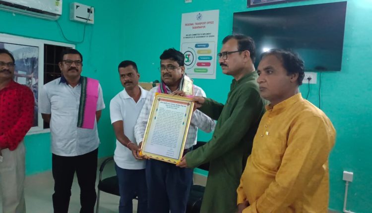 ସୁବର୍ଣ୍ଣପୁର : ଗତକାଲି ଓଡିଶା ସାମ୍ବାଦିକ ସଂଘ ଓ ମିଡ଼ିଆ ଫୋରମ ପକ୍ଷରୁ ସୁବର୍ଣ୍ଣପୁରର ନୂତନ ଆରଟିଓ ଙ୍କୁ ସ୍ୱାଗତ ସମ୍ବର୍ଦ୍ଧନା ଓ ବିଗତ ଆରଟିଓ ରବୀନ ପଟ୍ଟନାୟକଙ୍କୁ ବିଦାୟକାଳୀନ ସମ୍ବର୍ଦ୍ଧନା ଜ୍ଞାପନ କରାଯାଇଥିଲା । ଏଥିରେ ମୁଖ୍ୟ ଅତିଥି ଭାବେ ସୁବର୍ଣ୍ଣପୁର ଅତିରିକ୍ତ ଜ଼ିଲ୍ଲାପାଳ ସୂର୍ଯ୍ୟ ନାରାୟଣ ଦାଶ, ସମ୍ମାନିତ ଅତିଥି ଭାବେ ଉପ ଜ଼ିଲ୍ଲାପାଳ ଡ଼, ଈପସିତା ପ୍ରିୟଦର୍ଶନୀ ମିଶ୍ର ଓ ଏସଡିପିଓ ପୁଷ୍ପାଞ୍ଜଳୀ ନିଙ୍ଗୀ ଯୋଗ ଦେଇ ଉଭୟ ଆରଟିଓଙ୍କୁ ସମ୍ବର୍ଦ୍ଧିତ କରିଥିଲେ । ଏହି ସଭାରେ ଜ଼ିଲ୍ଲା ପୋଲିସ ପ୍ରଶାସନ ଓ ଆଞ୍ଚଳିକ ପରିବହନ ବିଭାଗର ସମସ୍ତ ଅଧିକାରୀ, କର୍ମଚାରୀ ଓ ସହରର ବିଭିନ୍ନ ଗଣମାଧ୍ୟମ ପ୍ରତିନିଧି ଯୋଗ ଦେଇଥିଲେ ।
