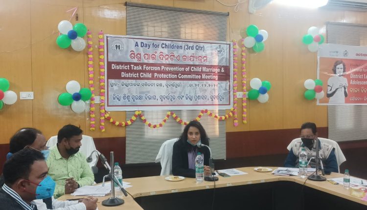 ସୁବର୍ଣ୍ଣପୁର: ସୁବର୍ଣ୍ଣପୁର ଜିଲ୍ଲା ଶିଶୁ ସୁରକ୍ଷା ବିଭାଗ ଓ ଜିଲ୍ଲା ପ୍ରଶାସନର ମିଳିତ ସହଯୋଗରେ ଜିଲ୍ଲାପାଳଙ୍କ ସମ୍ମିଳନୀ କକ୍ଷରେ ଶିଶୁଙ୍କ ପାଇଁ ଦିନଟିଏ କାର୍ଯ୍ୟକ୍ରମ ଅନୁଷ୍ଠିତ ହୋଇଯାଇଛି । ଏହି ଅବସରରେ ଜିଲ୍ଲା ଶିଶୁ ସୁରକ୍ଷା କମିଟି, ବାଲ୍ୟ ବିବାହ ଟାସ୍କ ଫୋର୍ସ ଇତ୍ୟାଦିର କାର୍ଯ୍ୟକ୍ରମ ଉପରେ ବିଶେଷ ଆଲୋଚନା କରାଯାଇଥିଲା । ସୁବର୍ଣ୍ଣପୁର ଜିଲ୍ଲାରେ ଏକ୍ସନ ଏଡ଼ ଓ ଜିଲ୍ଳା ପ୍ରଶାସନ ମିଳିତ ସହଯୋଗରେ ବାଲ୍ୟ ବିବାହକୁ ସମ୍ପୂର୍ଣ୍ଣ ନିରାକରଣ ନିମନ୍ତେ ପ୍ରଥମ କରି କିଶୋରୀ ବାଳିକା ମାନଙ୍କୁ ନେଇ ବାଲ୍ୟ ବିବାହ ପ୍ରତିରୋଧ ମଂଚ ଗଠନ କରାଯାଇଛି । ଜିଲ୍ଲାପାଳ ଅବୋଲି ସୁନୀଲ ନରୱଣେ ମୁଖ୍ୟ ଅତିଥି ଭାବରେ ଯୋଗଦେଇ କାର୍ଯ୍ୟକ୍ରମକୁ ଉଦଘାଟନ କରିଥିଲେ । ଆସନ୍ତା ୩ ମାସ ମଧ୍ୟରେ ଜିଲ୍ଲାର ପ୍ରତ୍ୟେକ ସ୍କୁଲରେ ସପ୍ତାହର ପ୍ରତ୍ୟେକ ଶୁକ୍ରବାର ଓ ଶନିବାର ଦିନ ବିଭିନ୍ନ ବିଭାଗର ମିଳିତ ସହଯୋଗରେ ପାଠ ପଢ଼ୁଥିବା ଓ ଅଧାରୁ ପାଠ ଛାଡ଼ିଥିବା ଛାତ୍ରଛାତ୍ରୀ ଏବଂ ତାଙ୍କର ଅଭିଭାବକମାନଙ୍କ ସହ ଜିଲ୍ଳା ପ୍ରଶାସନ ତରଫରୁ ଉପଯୁକ୍ତ ଶିକ୍ଷା ପ୍ରଦାନ, ବାଲ୍ୟ ବିବାହ ପ୍ରତିରୋଧ ଓ ବ୍ୟବହାରିକ ଜ୍ଞାନ ଉପରେ ପରାମର୍ଶ ପ୍ରଦାନ କରାଯିବ । ପୁନଶ୍ଚ କାର୍ଯ୍ୟକ୍ରମକୁ ଆହୁରି ଲୋକାଭିମୁଖୀ ଓ ବ୍ୟାପକ କରିବା ନିମନ୍ତେ ଜିଲ୍ଲାର ପ୍ରତ୍ୟେକ ଧର୍ମାନୁଷ୍ଠାନର ପରିସରରେ ବାଲ୍ୟ ବିବାହ ନିରାକରଣ ପାଇଁ ସଚେତନତା ବାର୍ତ୍ତା ପ୍ରଦର୍ଶିତ କରାଯାଇ ଜନସାଧାରଣଙ୍କୁ ସଚେତନ କରାଯିବ । ଏହି ଅବସରରେ ଜିଲ୍ଲାପାଳଙ୍କ କାର୍ଯ୍ୟାଳୟରେ ଶିଶୁ କର୍ଣ୍ଣର ଉଦଘାଟିତ ହୋଇଯାଇଛି । ଯାହାଦ୍ୱାରା ଜିଲ୍ଲାପାଳଙ୍କୁ ସାକ୍ଷାତ କରିବାକୁ ଆସୁଥିବା ମା / ବାପାଙ୍କ ସାଙ୍ଗରେ ଥିବା ଶିଶୁ ମାନେ ଉକ୍ତ ସ୍ଥାନରେ ଖେଳିବା, ବସିବା ସୁଯୋଗ ପାଇପାରିବେ ।