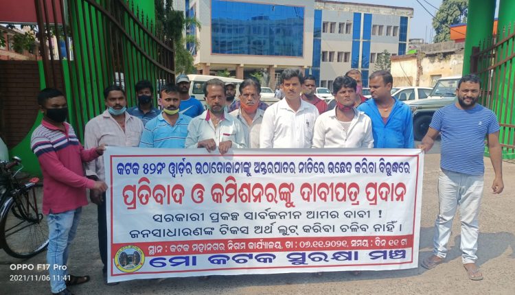 ଉଠାଦୋକାନୀଙ୍କୁ ଅନ୍ତରପାତର ନୀତିରେ ଜବରଦଖଲ ଉଛେଦକୁ ବିରୋଧ; ସିଏମସି କାର୍ଯ୍ୟାଳୟ ସମ୍ମୁଖରେ ମୋ କଟକ ସୁରକ୍ଷା ମଞ୍ଚର ପ୍ରତିବାଦ