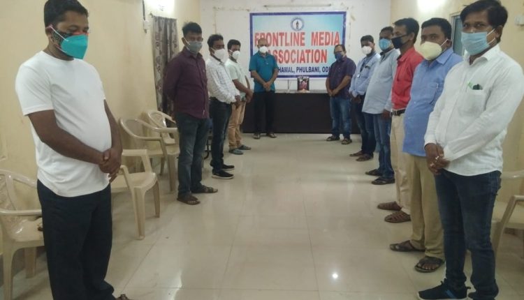 ଫୁଲବାଣୀ,୨୫/୫- ଦିବଙ୍ଗତ କରୋନା ଯୋଦ୍ଧା ସାମ୍ବାଦିକ ଆଶୁତୋଷ ବେହେରାଙ୍କ ଉଦେଶ୍ୟରେ କନ୍ଧମାଳ ଜିଲ୍ଲା ଫ୍ରଣ୍ଟଲାଇନ ମିଡ଼ିଆ ଏସୋସିଏସନ ତରଫରୁ ଫୁଲବାଣୀସ୍ଥିତ ପ୍ରେସକ୍ଲବ ଠାରେ କୋଭିଡ ଗାଇଡ଼ ଲାଇନ ଅନୁଯାୟୀ ଏକ ଶୋକସଭା ଅନୁଷ୍ଠିତ ହୋଇଯାଇଛି । ଏହି ଶୋକସଭାରେ ପ୍ରେସକ୍ଳବର ସଭାପତି ଶିବପ୍ରସାଦ ତ୍ରିପାଠୀ, ସମ୍ପାଦକ ଅଜିତ ମହାରଣା ଏବଂ ଫ୍ରଣ୍ଟଲାଇନ ମିଡ଼ିଆ ଏସୋସିଏସନର ସଭାପତି ସୁଜିତ ବେହେରା, କାର୍ଯ୍ୟକାରୀ ସଭାପତି ବ୍ରଜବିହାରୀ ନନ୍ଦ, ସମ୍ପାଦକ ତ୍ରିନାଥ ସାହୁ, କୋଷାଧ୍ୟକ୍ଷ ସୁନୀଲ ବିଶ୍ୱାଳ,ଉପ-ସଭାପତି ଅଶୋକ ମହାନ୍ତି, ସ୍କୃଟିନୀ କମିଟି ସଦସ୍ୟ ରାକେଶ ରାଉତ, ସାମ୍ବାଦିକ ରଞ୍ଜନ ଦାସ, ସୂର୍ଯ୍ୟ ବେହେରା, ଜିଲ୍ଲା ପୋଲିସର ଜ.ଓ ଧର୍ମେନ୍ଦ୍ର ପ୍ରଧାନ, ସର୍ଜେଣ୍ଟ ସରୋଜ ବେହେରା ପ୍ରମୁଖ ଉପସ୍ଥିତ ରହିଥିଲେ । ଶୋକସଭା ପ୍ରାରମ୍ଭରୁ ଦିବଙ୍ଗତ ସାମ୍ବାଦିକ ଆଶୁତୋଷ ବେହେରାଙ୍କ ଅମର ଆତ୍ମର ସଦଗତି ନିମନ୍ତେ ସମସ୍ତେ ଏକ ମିନିଟ ନିରବ ପ୍ରାର୍ଥନା କରିଥିଲେ । ଶୋକସଭାରେ ଉପସ୍ଥିତ ସାମ୍ବାଦିକ ଏବଂ ଅତିଥିମାନେ ଦିବଙ୍ଗତ ସାମ୍ବାଦିକ ଏକାଧାରରେ ଜଣେ ସାମ୍ବାଦିକ, ଭଲ କ୍ରୀଡ଼ାବିତ, ସମାଜସେବୀ, ନମ୍ର ଭଦ୍ର ଏବଂ ସମସ୍ତଙ୍କ ପ୍ରିୟ ବ୍ୟକ୍ତିତ୍ୱ ଭାବେ ବହୁ ସୁନାମ ଅର୍ଜନ କରିଥିଲେ । ତାଙ୍କର ଅକାଳ ବିୟୋଗରେ ସମସ୍ତେ ବ୍ୟକ୍ତିଗତ ଭାବେ ମର୍ମାହତ ବୋଲି ନିଜ ନିଜ ବକ୍ତବ୍ୟରେ ଶୋକସଭାରେ କହିଥିଲେ । ଏସୋସିଏସନ ତରଫରୁ ତାଙ୍କ ଶୋକ ସନ୍ତପ୍ତ ପରିବାରକୁ କିଛି ଆର୍ଥିକ ସାହାଯ୍ୟ ପ୍ରଦାନ କରାଯିବା ସହିତ ଜିଲ୍ଲା ପ୍ରଶାସନ ତରଫରୁ ମଧ୍ୟ ତାଙ୍କ ପରିବାରକୁ ଆର୍ଥିକ ସାହାଯ୍ୟ ପ୍ରଦାନ କରିବା ପାଇଁ କନ୍ଧମାଳ ଜିଲ୍ଲାପାଳଙ୍କୁ ନିବେଦନ କରିବା ସହିତ କରୋନା ଯୋଦ୍ଧା ସାମ୍ବାଦିକଙ୍କ ପାଇଁ ସରକାର ଘୋଷଣା କରିଥିବା ଆର୍ଥିକ ଅନୁଦାନ ମଧ୍ୟ କିଭଳି ଅତିଶୀଘ୍ର ତାଙ୍କ ପରିବାରକୁ ମିଳିପାରିବ ଏ ନେଇ ଓଡ଼ିଶାର ମାନ୍ୟବର ମୁଖ୍ୟମନ୍ତ୍ରୀଙ୍କ ଉଦେଶ୍ୟରେ ଏକ ନିବେଦନ ପତ୍ର ପ୍ରଦାନ କରାଯିବ ବୋଲି ଆସୋସିଏସନର ସଭାପତି ସୁଜିତ ବେହେରା ଶୋକସଭାରେ ଘୋଷଣା କରିଥିଲେ ।