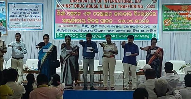 ଫୁଲବାଣୀ,(ହୀ.ପ୍ର):- ସ୍ଥାନୀୟ ଗାନ୍ଧୀସ୍ମୃତି ଭବନ ଠାରେ ଜିଲ୍ଳା ପ୍ରଶାସନ କନ୍ଧମାଳ ଓ ଅବକାରୀ ବିଭାଗ ତଥା ସାମାଜିକ ସୁରକ୍ଷା ବିଭାଗଙ୍କ ମିଳିତ ଆନୁକୂଲ୍ୟରେ ଆନ୍ତର୍ଜାତିକ ନିଶା ନିବାରଣ ଦିବସ ପାଳିତ ହୋଇଯାଇଛି । ଏହି କାର୍ଯ୍ୟକ୍ରମରେ କନ୍ଧମାଳ ଜିଲ୍ଲାପାଳ ଆଶିଷ ଈଶ୍ୱର ପାଟିଲ ମୁଖ୍ୟଅତିଥି ଭାବରେ ଯୋଗ ଦେଇଥିବା ବେଳେ ସମ୍ମାନୀତ ଅତିଥି ଭାବରେ ଜିଲ୍ଲା ପରିଷଦ ଅଧ୍ୟକ୍ଷା ନନ୍ଦିନୀ ମଲ୍ଲିକ, ଏସ୍ଡ଼ିପିଓ ମହେନ୍ଦ୍ର ନାଥ ମୁର୍ମୁୁ, ପ୍ରଜାପିତା ବ୍ରହ୍ମ କୁମାରୀ ସଙ୍ଘର ସଦସ୍ୟା ବି.କେ ସବିତା, ଡି ଏସ ଏସ ଓ ବଳରାମ ଜେନା, ଅବକାରୀ ବିଭାଗର ଏସପି ମଧୁସ୍ମିତା ନାୟକ, ଏ ଏସ ଡବ୍ଲୁ ଓ କନ୍ଧମାଳ ମଞ୍ଜୁଲତା ପ୍ରଧାନ, ଡିସିପିଓ ରଶ୍ମିତା କରନ ପ୍ରମୁଖ ମଞ୍ଚାସିନ ରହି ନିଶା ନିବାରଣ ଉପରେ ନିଜ ନିଜର ବକ୍ତବ୍ୟ ରଖିଥିଲେ । ଏଥିସହିତ ଏ ନେଇ ଏକ ରାଲି ଜିଲ୍ଲାପାଳଙ୍କ କାର୍ଯ୍ୟାଳୟ ଠାରୁ ଆରମ୍ଭହୋଇ ସହର ପରିକ୍ରମା କରାଯାଇଥିଲା । ସଭା ଶେଷରେ ନିଶା ନିବାରଣ ସକାଶେ ସମସ୍ତଙ୍କୁ ବୁଝାଇବା ପାଇଁ ଶପଥ ପାଠ କରିଥିଲେ । ଏଥିରେ ପୋଲିସ ଉଚ୍ଚବିଦ୍ୟାଳୟର ପ୍ରଧାନ ଶିକ୍ଷକ ଦେବୀ ପ୍ରସାଦ ଶତପଥୀ, ଖେଳ ଶିକ୍ଷକ ପ୍ରଶାନ୍ତ ଦାସ ଓ ସ୍କାଉଟ ଛାତ୍ରଛାତ୍ରୀଙ୍କ ସମେତ ଅବକାରୀ ବିଭାଗ କର୍ମଚାରୀମାନେ ସାମିଲ ହୋଇ ନିଶାନିବାରଣ ପାଇଁ ସମ୍ବନ୍ଧୀୟ ସ୍ଲୋଗାନ ଦେବା ସହ ଲିଫପ୍ଲେଟ ବଣ୍ଟନ କରିଥିଲେ ।