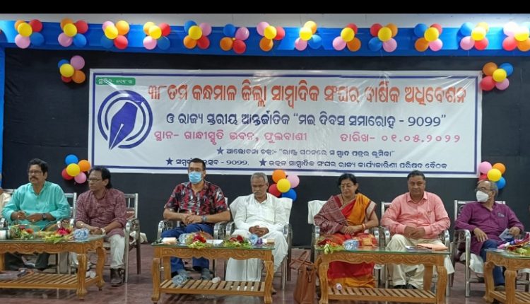 ଫୁଲବାଣୀ,୨/୫:- ଫୁଲବାଣୀ ଗାନ୍ଧୀ ସ୍ମୃତି ଭବନଠାରେ କନ୍ଧମାଳ ଜିଲ୍ଲା ସାମ୍ବାଦିକ ସଂଘର ୩୮ତମ ବାର୍ଷିକ ଉତ୍ସବ ଓ ରାଜ୍ୟସ୍ତରୀୟ ମଇ ଦିବସ ମହା ସମାରୋହରେ ଅନୁଷ୍ଠିତ ହୋଇଯାଇଛି । ଏହି କାର୍ଯ୍ୟକ୍ରମରେ ମୁଖ୍ୟଅତିଥି ଭାବେ ଫୁଲବାଣୀ ବିଧାୟକ ଅଙ୍ଗଦ କହର, ସମ୍ମାନିତ ଅତିଥି ଭାବେ ଫୁଲବାଣୀ ପୌର ପରିଷଦ ଅଧ୍ୟକ୍ଷା ସ୍ମିତାରାଣୀ ମହାନ୍ତି, ରାଜ୍ୟ ସଂଘ ସାଧାରଣ ସଂପାଦକ ବେଣୁଧର ପଣ୍ଡା, ବରିଷ୍ଠ ସାମ୍ବାଦିକ ତଥା ଆଇଏଫଡବ୍ଲୁଜେ ପ୍ରସନ୍ନ ତ୍ରିପାଠୀ ପ୍ରମୁଖ ଯୋଗଦେଇ ସାମ୍ବାଦିକମାନଙ୍କ ବୃତ୍ତିଗତ ସୁରକ୍ଷା ଉଚିତ ପାରିଶ୍ରମିକ ଯୋଗାଇ ଦେଲେ ସମ୍ବାଦ ପ୍ରକାଶ କରିବାରେ ଅଧିକ ସ୍ୱଚ୍ଛତା ଓ ନିରପେକ୍ଷତା ରହିବ ଓ ଏହା ଏକ ଶକ୍ତିଶାଳୀ ରାଷ୍ଟ୍ର ଗଠନରେ ସହାୟକ ହୋଇପାରିବ ବୋଲି ମତବ୍ୟକ୍ତ କରିଥିଲେ । ସେହିପରି ଏହି ଅବସରରେ ମୁଖ୍ୟବକ୍ତା ଭାବେ ବରିଷ୍ଠ ପ୍ରଶାସକ ତଥା ଉପ-ଜିଲ୍ଲାପାଳ ଶେଷଦେବ ମିଶ୍ର ଯୋଗଦେଇ ସାମ୍ବାଦିକମାନେ ସର୍ବଦା ସଠିକ ତଥ୍ୟ ପ୍ରକାଶ କରିବା ଓ ନିରପେକ୍ଷତା ଉପରେ ଧ୍ୟାନ ଦେବା ଜରୁରୀ ବୋଲି କହିଥିଲେ । କନ୍ଧମାଳ ଜିଲ୍ଲା ସଂଘ ସଭାପତି ଡଃ.ଅରୁପ ଜେନା ଏଥିରେ ସଭାପତିତ୍ୱ କରିଥିବାବେଳେ ବରିଷ୍ଠ ସାମ୍ବାଦିକ ତଥା ରାଜ୍ୟସ୍ତରୀୟ ଉତ୍ସବ କମିଟିର ଅଧ୍ୟକ୍ଷ ସୁନୀଲ ପଟ୍ଟନାୟକ ସ୍ୱାଗତ ଭାଷଣ ଦେଇଥିବା ବେଳେ ସଂଘ ସାଧାରଣ ସଂପାଦକ ଜୟସେନ ପରିଡ଼ା ସଂଘର ବାର୍ଷିକ ବିବରଣୀ ପାଠ କରିଥିଲେ । ଅଶୋକ ପରିଡା ଅତିଥି ପରିଚୟ ଓ ମଞ୍ଚ ପରିଚାଳନା କରିଥିଲେ । ଏହି ଅବସରରେ ରାଷ୍ଟ୍ର ଗଠନରେ ଗଣମାଧ୍ୟମର ଭୂମିକା ଶୀର୍ଷକ ଆଲୋଚନାଚକ୍ର ଅନୁଷ୍ଠିତ ହୋଇଥିଲା । ପରେପରେ ଜିଲ୍ଲାର ବରିଷ୍ଠ ସାମ୍ବାଦିକ ଏମଡି .ନାଜିର ଅ ।ଖତାର, ମହାଦେବ ସାହୁ, ବିଜୟ ମହାନ୍ତି. ଡ ଅରୂପ ଜେନା, ରବି ଦାସ, ଶିଶିର ପଟ୍ଟନାୟକ ବିଦ୍ୟାଧର ପାଳ, ନାରାୟଣ ସାହୁ ପ୍ରମୁଖଙ୍କୁ ସମ୍ବର୍ଦ୍ଧିତ କରାଯାଇଥିବାବେଳେ ସମାଜସେବା କ୍ଷେତ୍ରରେ ସ୍ୱାତୀର ସମ୍ପାଦକ ହରିଶଙ୍କର ରାଉତ, ଶାନ୍ତି ମୈତ୍ରୀ , ବନବାସୀ ସେବା ସମିତିର ସମ୍ପାଦକ ରବୀନ୍ଦ୍ର ପଣ୍ଡା, ସାହାରାର ସୁଶାନ୍ତ ନାୟକ ସମେତ ୪ ଟି ଓଡ଼ିଆ ସିନେମା ନିର୍ମାଣ କରୁଥିବା ପ୍ରଯୋଜକ ଓ ସିନେ ଅଭିନେତା ପ୍ରଶାନ୍ତନାଏକ, କଣ୍ଠଶିଳ୍ପୀ ଜଳନ୍ଧର ବେହେରା ପ୍ରମୁଖଙ୍କୁ ମଧ୍ୟ ସମ୍ବର୍ଦ୍ଧିତ କରାଯାଇଥିଲା । ଶେଷରେ ସାମ୍ବାଦିକ ଶିଶିର ପଟ୍ଟନାୟକ ଧନ୍ୟବାଦ ଅର୍ପଣ କରିଥିଲେ ।