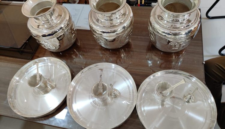 ପୁରୀ : ଭୁବନେଶ୍ୱର ବରମୁଣ୍ଡା ଅଞ୍ଚଳର ଶ୍ରୀ ସୁବ୍ରତ ରଥ ଆଜି ପୂର୍ବାହ୍ନରେ ଶ୍ରୀମନ୍ଦିର ନୀତି ପ୍ରଶାସକ ଶ୍ରୀଜିତେନ୍ଦ୍ର କୁମାର ସାହୁ ଏବଂଉନ୍ନୟନ ପ୍ରଶାସକ ଶ୍ରୀ ଅଜୟ କୁମାର ଜେନା ମହୋଦୟଙ୍କୁ ଭେଟି ଶ୍ରୀଜଗନ୍ନାଥ ମହାପ୍ରଭୁଙ୍କ ଉଦେଶ୍ୟରେ ୫ଲକ୍ଷ ଟଙ୍କା ଦାନ ଦେବା ସହ ମହାପ୍ରଭୁଙ୍କ ନିତ୍ୟ ବ୍ୟବହାର ନିମନ୍ତେ ମୋଟ ୭ କେଜି ୬୬୨ ମିଲି ଗ୍ରାମ ଓଜନର ୩ ଗୋଟି ରୁପା ଗରା,୩ ଗୋଟି ରୁପା ଥାଳି, ୬ଗୋଟି ପଞ୍ଚୁ ଓ ପାତ୍ରୀ ଏବଂ ୩ଗୋଟି ଛୋଟ ହାତ ଘଣ୍ଟି ପ୍ରଦାନ କରିଛନ୍ତି ।