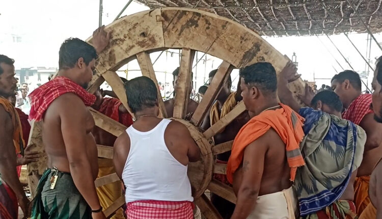 ପବିତ୍ର ଭଉଁରୀ ତିଥିରେ ଛକ ଅଖ ଡେରା ନୀତି ପାଳିତ ହେବାକୁ ଥିବାରୁ ରଥ ଖଳା ଚଳଚଞ୍ଚଳ ହୋଇଉଠିଛି । ରଥ ଖଳାରେ ଚାଲିଛି ଚକ ଫିଟିଂ । ରଥର ନାହାକା ଚକରେ ପଇତା ପିନ୍ଧାଯାଇଛି । ଚକର ସୌନ୍ଦର୍ଯ୍ୟ ବୃଦ୍ଧି କରେ ପଇତା । ପହିର ମଝି ଅଂଶରେ ଅଢେଇ ଇଞ୍ଚର ଏକ ବିଟ ଭଳି ଚକ୍ରାକାର ବଳୟ ହେଉଛି ‘ପଇତା’ । ବାରିସିରେ ହାଣି ନିପୁଣ ବିଶ୍ୱକର୍ମାମାନେ ଏହାକୁ ତିଆରିଛନ୍ତି । ଭଉଁରୀ ଉତ୍ସବ ପାଇଁ ୬ ଚକ ପ୍ରସ୍ତୁତ ସରିଥିବା ବେଳେ ନାହାକା ଅଖ କାର୍ଯ୍ୟ ଶେଷ ପର୍ଯ୍ୟାୟରେ ପହଁଚିଛି ବୋଲି ନିର୍ମାଣକାରୀ ସେବକ କହିଛନ୍ତି । ସେପଟେ ରୂପକାର ଚାଲିରେ ରୂପକାର ସେବକ ମାନେ ସିଂହବିରାଳ ଓ ଗଜବିରାଳ ମୂର୍ତ୍ତି ତିଆରିରେ ବ୍‌ଯସ୍ତ ରହିଛନ୍ତି । ରୂପ ଖୋଦେଇ ଶେଷ ହୋଇଥିବା ରୂପ ଗୁଜ ଗୁଡିକରେ ପାଲିସ କାର୍ଯ୍ୟ ମଧ୍ୟ ଜାରି ରଖିଛନ୍ତି