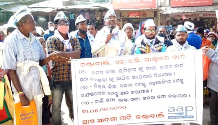କଣ୍ଟାବଞ୍ଜି: କଣ୍ଟାବାଞ୍ଜି ନିର୍ବାଚନ ମଣ୍ଡଳୀ ଆମ ଆଦମୀ ପାର୍ଟି ନେତା ସୁରଥ ବେହେରାଙ୍କ ନେତୃତ୍ୱରେ ୧୪ଦଫା ଦାବିକୁ ଭିତ୍ତି କରି କାର୍ଯ୍ୟନିର୍ବାହୀ ଅଧିକାରୀ ଙ୍କ ଜରିଆରେ ଜିଲ୍ଲାପାଳକୁ ଦାବିପତ୍ର ପ୍ରଦାନ କରାଯାଇଛି । ଏହି ଦାବିପତ୍ରରେ ବାର୍ଦ୍ଧବ୍ୟ, ବିଧବା ଓ ଭିନ୍ନକ୍ଷମକୁ ତିନି ମାସର ଭତ୍ତା ନଗଦ ଆକାରରେ ଘରକୁ ଯୋଗାଇବା, ଯୋଗ୍ୟ ହିତାଧିକାରୀକୁ ଚିହ୍ନଟ କରି ନୂଆ ରାସନ କାର୍ଡ ଯୋଗାଇବା, ସହରର ପ୍ରତ୍ୟେକ ପରିବାରକୁ ପାଇପ ମାଧ୍ୟମ ପିଇବା ପାଣି ମାଗଣାରେ ଯୋଗାଇବା, ଭୂମିହୀନକୁ ପଟ୍ଟା ପ୍ରଦାନ କରିବା, ନାଲି ନର୍ଦ୍ଦମା ନିୟମିତ ସାଫ ହେବା, ମହାମାରୀ କାଳରେ ଲୋକଙ୍କ ଆୟ କମି ଥିବାରୁ ଟାଟା କମ୍ପାନୀ ଦ୍ୱାରା ଚଢ଼ା ଦରରେ ବିଜୁଳି ବିଲ୍ ଆଦାୟକୁ ବନ୍ଦ କରିବା ସଙ୍ଗେ ତିନ ଶହ ୟୁନିଟ ପ୍ରତ୍ୟେକ ପରିବାରକୁ ମାଗଣା ଦିଆଯାଉ ବୋଲି ଉଲ୍ଲେଖ କରାଯାଇଛି । ସାପ୍ତାହିକ ଓ ଦୈନିକ ବଜାର ହାଟରେ ପରିବା ବିକାଳୀ ଓ ବ୍ୟବସାୟୀଙ୍କ ଠାରୁ ଟିକସ ଆଦାୟ ବନ୍ଦ କରିବା, ସମସ୍ତ ଉଠା ଦୋକାନୀକୁ ଆର୍ଥିକ ସହଯୋଗ, ଡାକ୍ତରଖାନାରେ ନିୟୋଜିତ ସରକାରୀ ଡାକ୍ତରଙ୍କ ଘରୋଇ କ୍ଲିନିକ ଚିକିତ୍ସା ବନ୍ଦ କରିବା ଉଲ୍ଲେଖ ରହିଥିଲା । କାର୍ଯ୍ୟନିର୍ବାହୀ ଅଧିକାରୀ ସେମି ଜୟଶ୍ରୀ ରେଡ୍ଡୀଙ୍କ ଅନୁପସ୍ଥିତିରେ ନୋଡାଲ ଅଫିସର ଚନ୍ଦ୍ରଶେଖର ଭୋଇକୁ ଦାବି ପତ୍ର ପ୍ରଦାନ କରିଛନ୍ତି । ଦାବିପତ୍ର ପ୍ରଦାନ ସମୟରେ ଜିଲ୍ଲା ସଭାପତି ଆଶିଷ ପାଣ୍ଡେ, ସମ୍ପାଦକ ଶଙ୍ଖେଶ୍ୱର ମହାପାତ୍ର, ୟୁବା ନେତା ରମାକାନ୍ତ ବେହେରା, ସୋସିଆଲ ମେଡିଆ ଇନଚାର୍ଜ ଅଶୋକ ସୁନା, ବରିଷ୍ଠ କାର୍ଯ୍ୟକର୍ତ୍ତା ବାଲକୃଷ୍ଣ ସେଠ, ଅବଦୁଲ ଅଲିମ ସହ ଶତାଧିକ ମହିଳା ଓ ପୁରୁଷ କର୍ମୀ ସମ୍ମିଳିତ ଥିଲେ ।