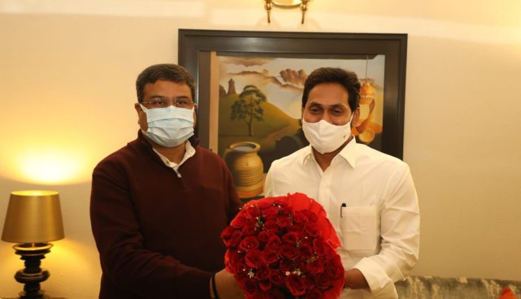 କେନ୍ଦ୍ରମନ୍ତ୍ରୀ ଧର୍ମେନ୍ଦ୍ର ପ୍ରଧାନଙ୍କୁ ଭେଟିଲେ ଆନ୍ଧ୍ର ପ୍ରଦେଶ ମୁଖ୍ୟମନ୍ତ୍ରୀ
