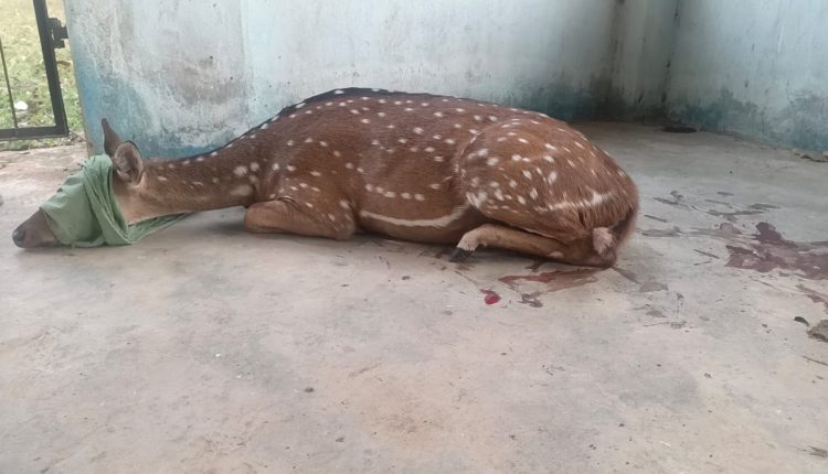 ନୟାଗଡ଼ : ଗଣିଆ ବନାଞ୍ଚଳ ଅଧିନସ୍ଥ ବିଞ୍ଝାଗିରୀ ଜଙ୍ଗଲରୁ ୨ ବର୍ଷର ଏକ ମାଈ ହରିଣକୁ ଉଦ୍ଧାର କରିଛି ବନବିଭାଗ । ବନବିଭାଗ ସୂତ୍ରରୁ ପ୍ରକାଶ ଯେ,ଗଣିଆ ବନାଞ୍ଚଳ ବିନ୍ଧ୍ୟଗିରି ନିକଟରେ ଏକ ମାଈ ହରିଣକୁ ଆହତ ଅବସ୍ଥାରେ ଗ୍ରାମବାସୀ ଦେଖିବାକୁ ପାଇଥିଲେ । ଏନେଇ ଗ୍ରାମବସୀ ବନ ବିଭାଗକୁ ଖବର ଦେଇଥିଲେ । ଗଣିଆ ବନାଞ୍ଚଳ ଅଧିକାରୀ ସୋନାଲି ସିଓଙ୍କ ନିର୍ଦ୍ଦେଶକ୍ରମେ ବନପାଳ ଶିଶିର କୁମାର ସାହୁ, ଫରେଷ୍ଟ ଗାର୍ଡ ସନ୍ତୋଷ ପ୍ରଧାନ ଓ ପାରା ଷ୍ଟାଫ ପହଂଚି ଆହତ ହରିଣକୁ ଗଣିଆ ପ୍ରାଣୀ ଚିକିତ୍ସାଳୟକୁ ଆଣି ପ୍ରାଥମିକ ଚିକିତ୍ସା କରିଥିଲେ । ପ୍ରାଣୀ ଚିକିତ୍ସକ ପ୍ରଦୀପ କୁମାର ସାହୁ ହରିଣର ଚିକିତ୍ସା କରିଥିଲେ । ହରିଣର ପଛ ପଟର ଡାହାଣଗୋଡ଼ର ହାଡ଼ ଭାଙ୍ଗି ଯାଇ କ୍ଷତ ସୃଷ୍ଟି ହୋଇଥିଲା । ହରିଣଟି ସୁସ୍ଥ ଥିବା ଫରେଷ୍ଟର ଶିଶିର କୁମାର ସାହୁ ପ୍ରକାଶ କରିଛନ୍ତି । ହରିଣଟିକୁ ବୁଲା କୁକୁର ଗୋଡାଉ ଥିବା ଯୋଗୁ ହରିଣଟି ଗାତରେ ପଡି ଏଭଳି ହୋଇଛି ବୋଲି ଅନୁମାନ କରିଛି ବନ ବିଭାଗ । ତେବେ ହରିଣଟି ସୁସ୍ଥ ହେଲା ପରେ ଜଙ୍ଗଲରେ ଛାଡି ଦିଆଯିବ ବୋଲି ବନପାଳ ଶିଶିର ସାହୁ ପ୍ରକାଶ କରିଛନ୍ତି ।