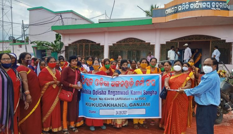ଗଞ୍ଜାମ : କେନ୍ଦ୍ରୀୟ ଟ୍ରେଡ଼ ୟୁନିଅନ ଆହ୍ୱାନରେ ସେପ୍ଟେମ୍ବର ୨୪ ତାରିଖରେ ଆୟୋଜିତ ହୋଇଥିବା ଦେଶବ୍ୟାପୀ ସ୍କିମ ଶ୍ରମିକଙ୍କ ଧର୍ମଘଟ ସଫଳ କରିବା ପରିପ୍ରେକ୍ଷୀରେ ଶୁକ୍ରବାର ଦିନ କୁକୁଡ଼ାଖଣ୍ଡି ପ୍ରକଳ୍ପ ଏଆଇଟିୟୁସି ଅଧିନ ନିଖିଳ ଓଡ଼ିଶା ଅଙ୍ଗନବାଡି କର୍ମୀ ସଙ୍ଘପକ୍ଷରୁ ଏକ ବିକ୍ଷୋଭ ପଦଯାତ୍ରା ଆୟୋଜନ ହୋଇଥିଲା। ବ୍ଳକର ସମସ୍ତ ଅଙ୍ଗନବାଡି କର୍ମୀ, ସହାୟିକା ଏକତ୍ରିତ ହୋଇ ଏକ ପଦଯାତ୍ରାରେ ବାହାରି ଆଇସିଡିଏସ୍ ଓ ବ୍ଲକ କାର୍ଯ୍ୟାଳୟ ସମ୍ମୁଖରେ ବିକ୍ଷୋଭ ପ୍ରଦର୍ଶନ କରିବା ସହ ୧୫ ଦଫା ଦାବି ନେଇ ଜିଲ୍ଲାପାଳଙ୍କ ଜରିଆରେ ଦ୍ଭାରତର ପ୍ରଧାନମନ୍ତ୍ରୀଙ୍କ ଉଦେଶ୍ୟରେ ଏକ ସ୍ମାରକ ପତ୍ର ସିଡିପିଓ କୁସୁମ କୁମାରୀ ସାହୁଙ୍କୁ ପ୍ରଦାନ କରିଥିଲେ। ଆଜିର ଏହି କାର୍ଯ୍ୟକ୍ରମରେ ଅଙ୍ଗନବାଡି କର୍ମୀ ସଙ୍ଘ ସଭାନେତ୍ରୀ ମାଣିକେଶ୍ୱରୀ ପଟ୍ଟନାୟକ, ସମ୍ପାଦିକା ସୁଦେଷ୍ଟା ପଟ୍ଟନାୟକ,ପ୍ରମିଳା ଜେନା, ପି. ସୁଶିଳା,ସଂଯୁକ୍ତା ସାହୁ, ବବି ଦଳେଇ, ଲଳିତା ସାହୁ, ଇନ୍ଦିରା ପାତ୍ର, ଡି. ରୁକ୍ମଣୀ, କେ.ରାଧାରାଣୀଙ୍କ ସମେତ ଅନ୍ୟ କର୍ମୀଙ୍କ ମିଳିତ ନେତୃତ୍ୱରେ ଆୟୋଜିତ ଏହି ବିକ୍ଷୋଭ ଓ ଗଣଧାରଣାରେ ନିୟୋଜିତ କର୍ମୀଙ୍କ ସାମାଜିକ ସୁରକ୍ଷା, ସର୍ବନିମ୍ନ ମଜୁରୀ ପ୍ରଦାନ କରିବା, ମୃତ୍ୟୁ କାଳୀନ ସହାୟତା ସହିତ ପେନସନ ୧୦ ହଜାର କରିବା ସହ ମାସିକ ଦରମା ୨୧ହଜାର ଟଙ୍କା ଲାଗୁ କରିବା, କରୋନା ସମ୍ମୁଖ ଯୋଦ୍ଧା ହିସାବରେ ସରକାରୀ କର୍ମଚାରୀଙ୍କ ଭଳି ମାଗଣା ଚିକିତ୍ସା ସୁବିଧା ମିଳିବା ସହ ମୃତ୍ୟୁ ପରେ ୫୦ଲକ୍ଷ ଟଙ୍କା ତାଙ୍କ ପରିବାର ସଦସ୍ୟଙ୍କୁ ପ୍ରଦାନ କରାଯାଉ, ଯେଉଁମାନେ କୋଭିଡ ଦାୟିତ୍ୱରେ ରହୁଛନ୍ତି ସେମାନଙ୍କୁ ପୂର୍ବରୁ ଥିବା ବକେୟା ଟଙ୍କା ପ୍ରଦାନ କରାଯାଉ, ସୁରକ୍ଷା ପାଇଁ ସରକାରୀ ମାନ୍ୟତା ମିଳିବା, ପ୍ରଧାନମନ୍ତ୍ରୀ ଜୀବନ ଜ୍ୟୋତି ବୀମା ଯୋଜନା, ପ୍ରଧାନମନ୍ତ୍ରୀ ସୁରକ୍ଷା ବୀମା ଯୋଜନା, ଅଙ୍ଗନବାଡି କର୍ମୀ ବୀମା ଯୋଜନାରେ ସାମିଲ କରିବା, ମଧ୍ୟାଣ୍ଣ ଭୋଜନରେ ଯେଉଁ ଅଙ୍ଗନବାଡି କର୍ମୀ ମାନେ ଜଡ଼ିତ ଅଛନ୍ତି । ସେମାନଙ୍କୁ ଗ୍ରୀଷ୍ମକାଳୀନ ଛୁଟିଦିନରେ ମଧ୍ୟ ମିନିମମ ଦରମା ପ୍ରଦାନ କରାଯାଉ, ଯେଉଁମାନେ ଡିୟୁଟି କରିବା ସମୟରେ କୋଭିଡ ସଂକ୍ରମଣରେ ଆକ୍ରାନ୍ତ ହୋଇଥିବା କର୍ମୀଙ୍କୁ ୧୦ ଲକ୍ଷ ଟଙ୍କା ପ୍ରଦାନ କରାଯାଉ, ପ୍ରକଳ୍ପ କାର୍ଯ୍ୟାଳୟ ପକ୍ଷରୁ କର୍ମୀଙ୍କ ପ୍ରତି କରାଯାଉଥିବା ଉଦେଶ୍ୟମୂଳକ କାର୍ଯ୍ୟାନୁଷ୍ଠାନକୁ ବନ୍ଦ କରିବା । ଆଦି ୧୫ ଦଫା ଦାବି ନେଇ ପ୍ରସ୍ତୁତ ଦାବିପତ୍ରକୁ କୁକୁଡ଼ାଖଣ୍ଡି ବିଡିଓଙ୍କ ଜରିଆରେ ପ୍ରଧାନମନ୍ତ୍ରୀଙ୍କ ଉଦେଶ୍ୟରେ ପ୍ରଦାନ କରାଯାଇଥିଲା।