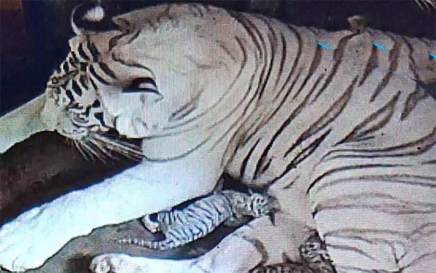 ବାରଙ୍ଗ: ନନ୍ଦନକାନନ ପ୍ରାଣୀଉଦ୍ୟାନରେ ଶନିବାର ରାତିରେ ଦୁଇଟି ପର୍ଯ୍ୟାୟରେ ୨ଟି ଛୁଆକୁ ଜନ୍ମ ଦେଇଛି ଧଳା ବାଘୁଣୀ ମୌସୁମୀ। ପ୍ରଥମ ଛୁଆ ଶନିବାର ରାତି ୯:୧୫ ଏବଂ ଦ୍ବିତୀୟ ଛୁଆ ରାତି ୧୧:୦୩ ସମୟରେ ଏନ୍କ୍ଲୋଜର ୨୮-ବି’ରେ ଜନ୍ମ ଦେଇଛି। ଜନ୍ମିତ ଛୁଆ ମଧ୍ୟରୁ ଗୋଟିଏ ଛୁଆ ସାଧାରଣ ରଙ୍ଗର ଏବଂ ଅନ୍ୟଟି ଧଳାରଙ୍ଗର ବୋଲି ଜଣାପଡିଛି। ମା’ ସହିତ ଥିବାରୁ ଜନ୍ମିତ ଛୁଆମାନଙ୍କ ଲିଙ୍ଗ ନିର୍ଣ୍ଣୟ ହୋଇପାରିନାହିଁ। ମା’ ଛୁଆମାନଙ୍କର ଯତ୍ନ ନେଇଥିବାର ଜଣାପଡ଼ିଛି।