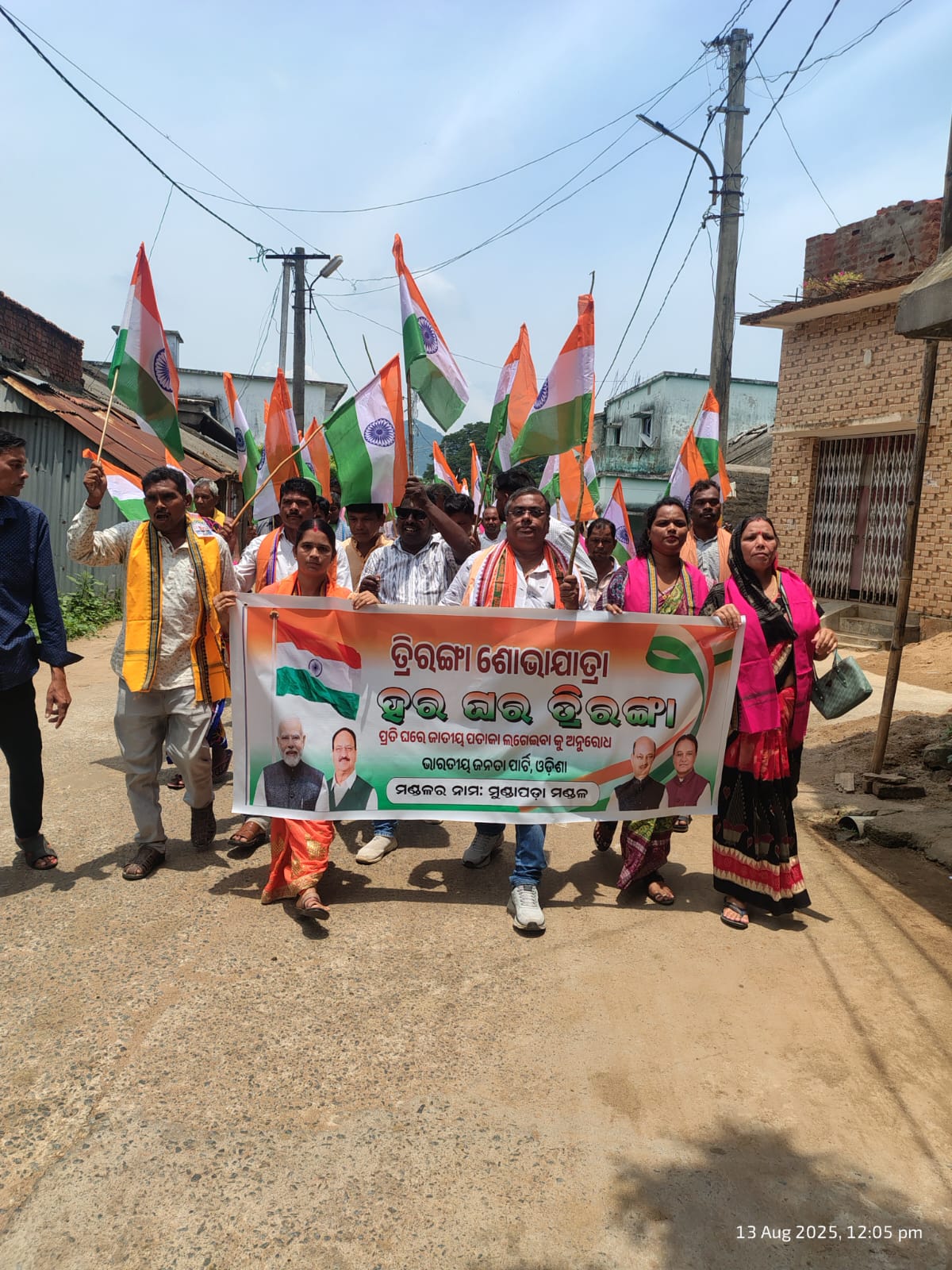 ବୌଦ୍ଧ- ପ୍ରଧାନମନ୍ତ୍ରୀ ନରେନ୍ଦ୍ର ମୋଦିଙ୍କ ଆହ୍ୱାନ କ୍ରମେ ବୌଦ୍ଧ ବିଧାନସଭା କ୍ଷେତ୍ରର ମୁଣ୍ଡାପଡା ମଣ୍ଡଳ ବଘିଆପଡାଠାରେ ଆଜି ଆୟୋଜିତ ତ୍ରିରଙ୍ଗା ପଦଯାତ୍ରା ଅନୁଷ୍ଠିତ ହୋଇଯାଇଛି l ବିଜେପି ମଣ୍ଡଳ ସଭାପତି ରଞ୍ଜନ ଖଟୁଆଙ୍କ ନେତୃତ୍ୱରେ ପଦଯାତ୍ରା ଅନୁଷ୍ଠିତ ହୋଇଥିଲା l ଏହି କାର୍ଯ୍ୟକ୍ରମରେ ଜିଲ୍ଲା ବିଜେପି ତରଫରୁ ପର୍ଯ୍ୟବେକ୍ଷକ ଭାବରେ ବରିଷ୍ଠ ବିଜେପି ନେତା ତଥା ବୌଦ୍ଧ ପଞ୍ଚାୟତ ସମିତି ଅଧ୍ୟକ୍ଷ ପ୍ରିୟଦର୍ଶୀ ପ୍ରତ୍ୟୁଷ ରଥ, ବିଜେପି ଜିଲ୍ଲା ସାଧାରଣ ସମ୍ପାଦକ ସୁଶାନ୍ତ ବାଘ, ଦୀପିକା ନାଏକ, ଆରତୀ ମହାକୁଳ, ଯଶୋଦା ପୃଷ୍ଟି, ତଥାଗତ କର୍ଣ୍ଣ, ଅଜିତ ବାଘ, ମୃତ୍ୟୁଞ୍ଜୟ ପୃଷ୍ଟି, ସଞ୍ଜିତ ପ୍ରଧାନ, ବୀରେନ୍ଦ୍ର ସାହୁ, ପ୍ରକାଶ ସାହୁ ସମେତ ଅନେକ କାର୍ଯ୍ୟକର୍ତ୍ତା ଉପସ୍ଥିତ ଥିଲେ l ଦେଶପ୍ରେମ ଓ ଏକତାର ସୁନ୍ଦର ଅନୁଭବ କଲୁ। ଆମେ ସମସ୍ତେ ଭାରତ ମାତାଙ୍କ ସେବକ ଏକତା ଆମର ଶକ୍ତି ଏବଂ ଦେଶପ୍ରେମରେ ଆମର ପରିଚୟ ବୋଲି ବୌଦ୍ଧ ପଞ୍ଚାୟତ ସମିତି ଅଧ୍ୟକ୍ଷ ବ୍ୟକ୍ତବ୍ୟ ରଖିଥିଲେ l ଆଜିର ତ୍ରିରଙ୍ଗା ପଦଯାତ୍ରା କେବଳ ଏକ ଯାତ୍ରା ନୁହେଁ, ଏହା ଥିଲା ଦେଶପ୍ରେମ, ଏକତା ଓ ତ୍ୟାଗର ପଥରେ ଚାଲିବାର ଏକ ସୁନ୍ଦର ଅଭିଯାନ ବୋଲି ଜିଲ୍ଲା ସାଧାରଣ ସମ୍ପାଦକ ଶ୍ରୀ ବାଘ ମତପ୍ରକାଶ କରିଥିଲେ l