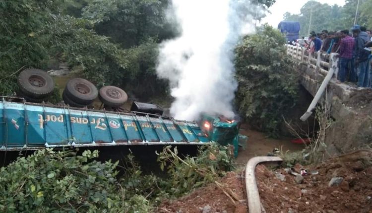 ଦଶପଲ୍ଲା : – ଖୋର୍ଦ୍ଧା-ବଲାଙ୍ଗୀର ୫୭ ନଂ ଜାତୀୟ ରାଜପଥ ର ଦଶପଲ୍ଲା ନିକଟସ୍ଥ ଶାଳିଆଗୋଛା ଠାରେ ଆଜି ସଂଧ୍ୟା ୫ ଟା ୧୦ ମିନିଟ୍ ସମୟରେ ଘଟିଯାଇଛି ଏକ ମର୍ମନ୍ତୁଦ ସଡକ ଦୁର୍ଘଟଣା । ପ୍ରାପ୍ତ ସୂଚନା ମୂତାବକ ଏକ ମାଲ୍ ବାହି ଟ୍ରକ୍ ଭାରସାମ୍ୟ ହରାଇ ଶାଳିଆଗୋଛା ଖଳଖଳା ନାଳ ମଧ୍ୟକୁ ଖସିପଡି ହୁତ୍ ହୁତ୍ ହୋଇ ଜଳି ଯାଇଛି ।